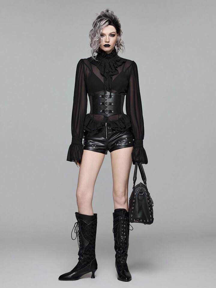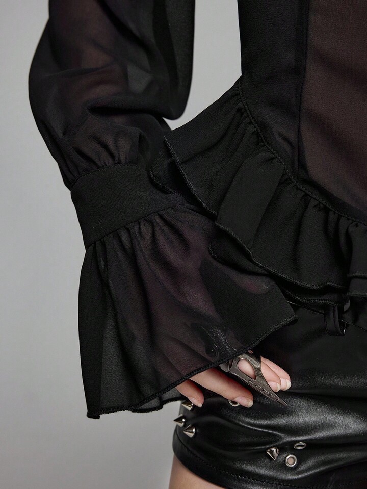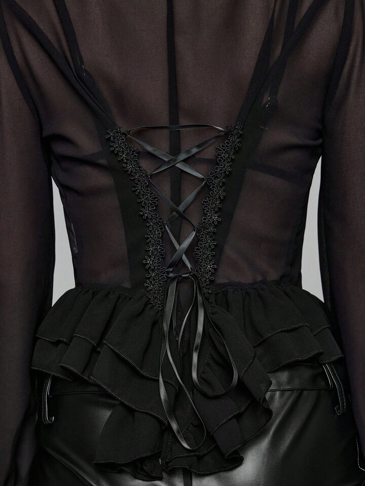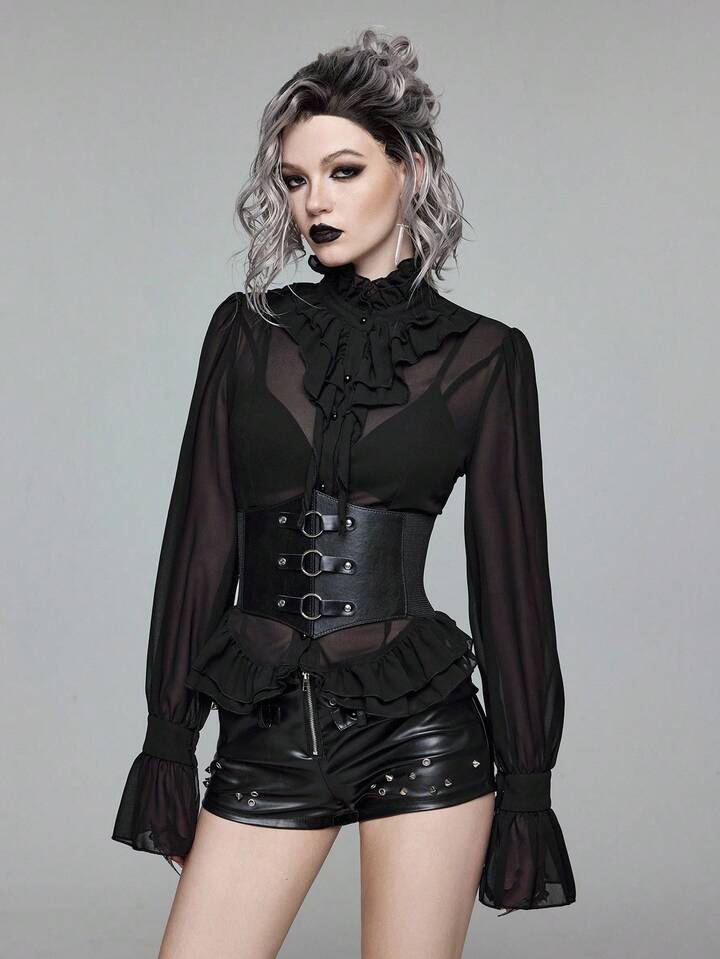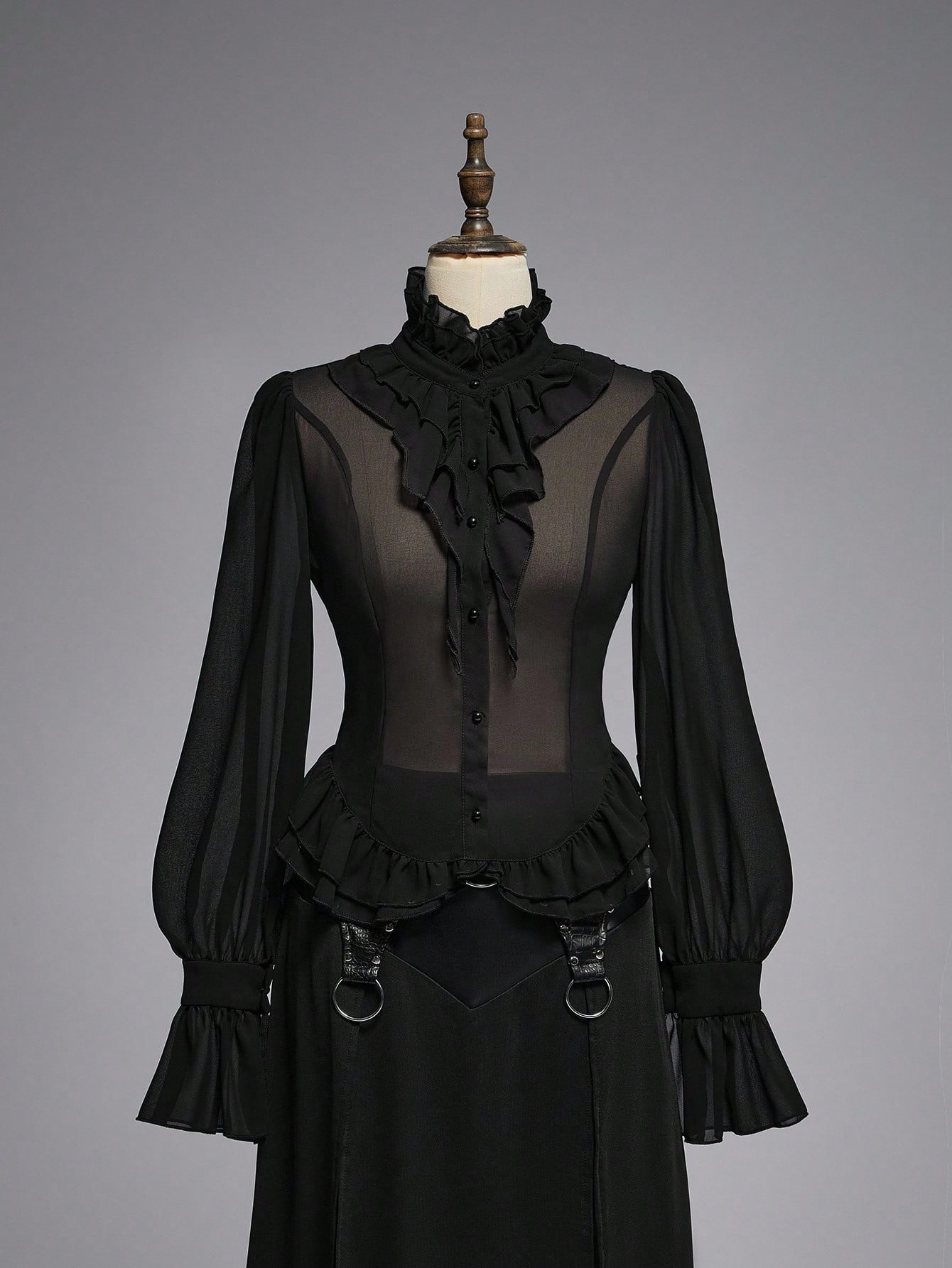 EDITION Gothic Medieval Palace Style Sheer Shirt With Mandarin Collar