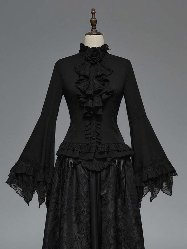 EDITION Gothic Style Lace Flare Sleeve Hem Women's Blouse, Suitable For Halloween Outfit
