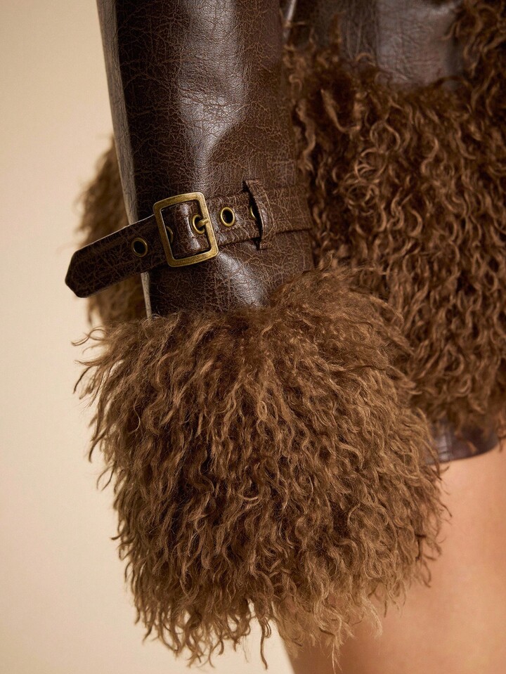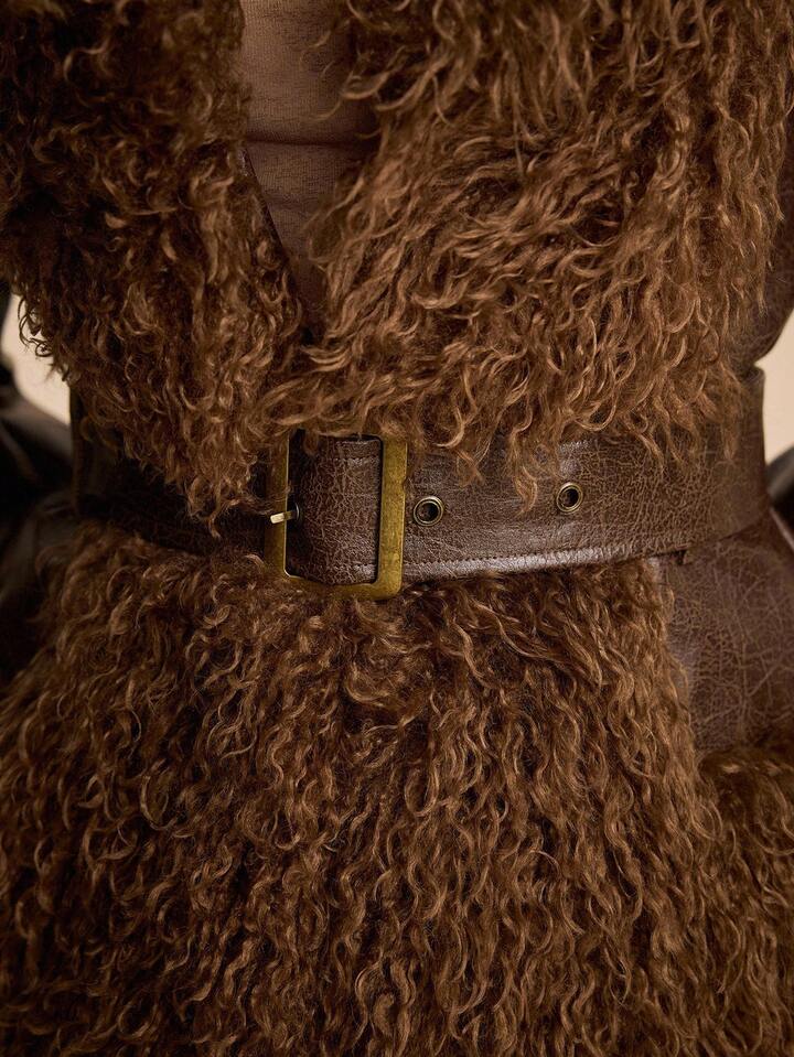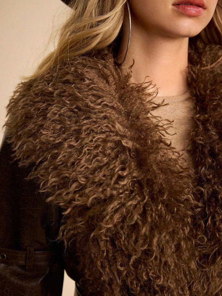 EDITION Hippie Chic Women's Faux Fur Jacket With Metal Buckle Waist Closure And Lapel Collar