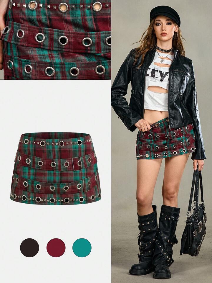 EDITION Ultra Low Waist Retro Sexy Mini Bodycon Plaid Skirt