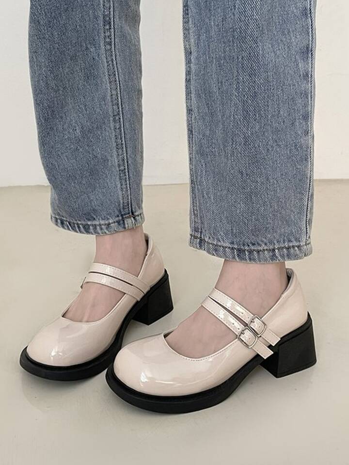 Elegant Mary Jane Pumps For Women, Buckle Decor Chunky Heeled Pumps