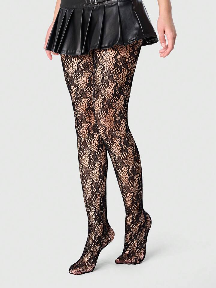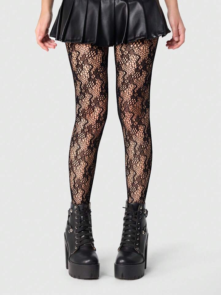 Fairycore 1 Pair Women Black Floral Hollow Fishnet Socks, Suitable For All Seasons