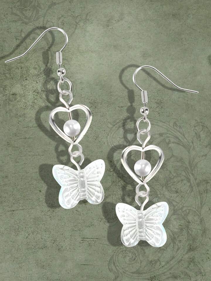 Fairycore 1pair Fashion Copper Alloy Butterfly & Heart Drop Earrings For Women For Daily Decoration