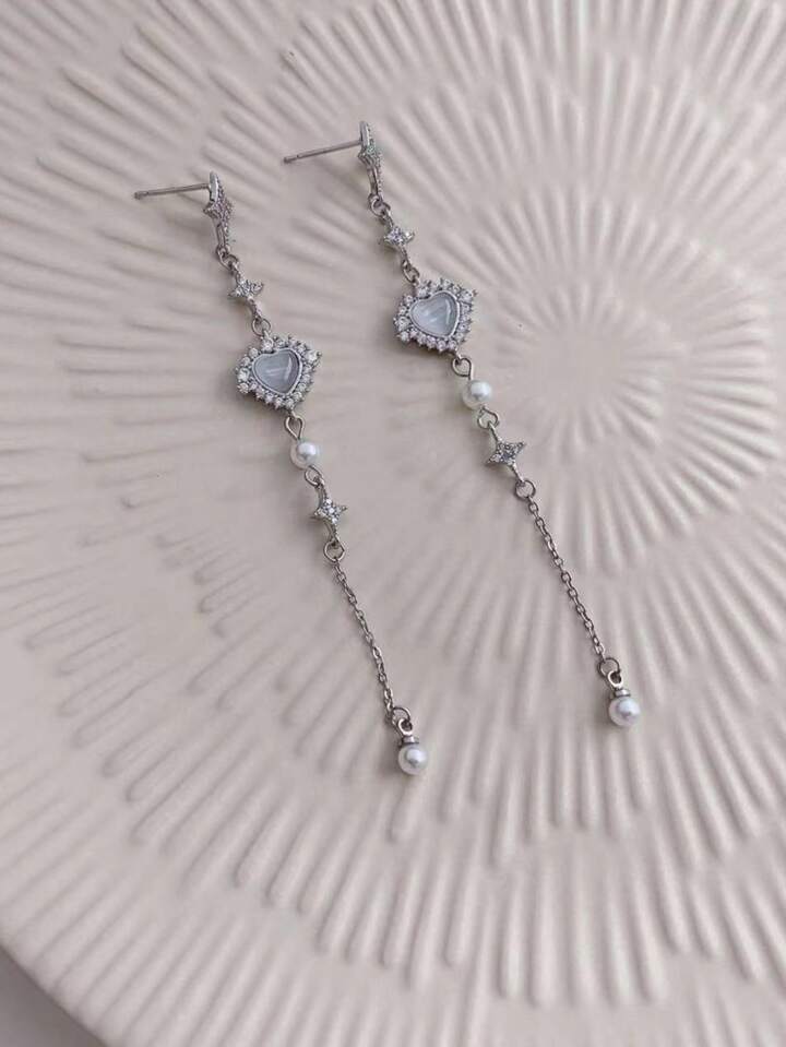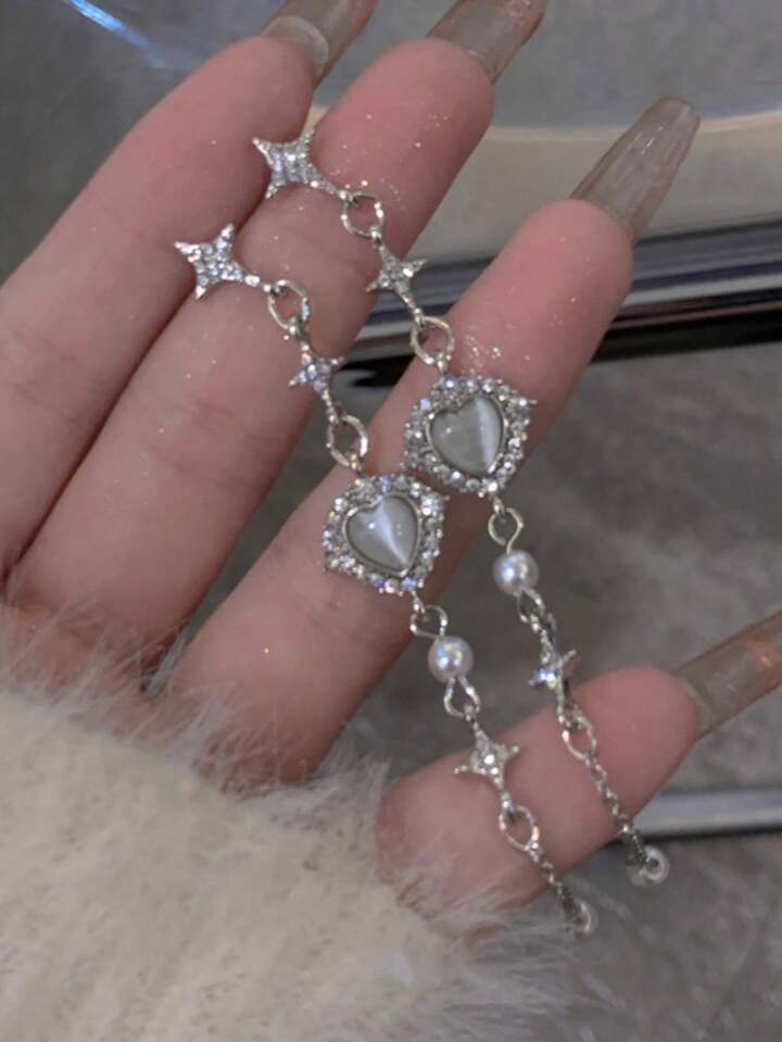 Fairycore 1pair Heart & Star Shaped Dangle Earrings