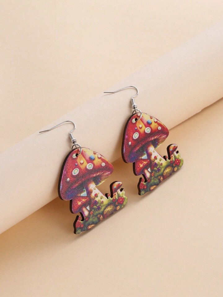 Fairycore 1pair Thanksgiving Themed Cartoon Mushroom Shaped Exaggerated Wooden Earrings