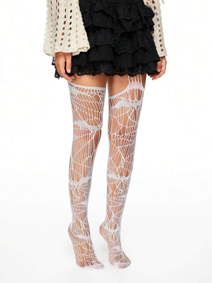 Fairycore 1pair Women Bat Decor Fishnet Stockings, Suitable For All Seasons, Halloween