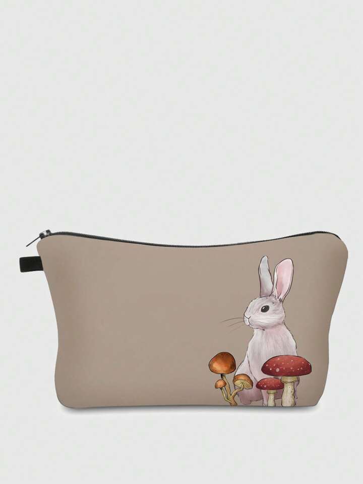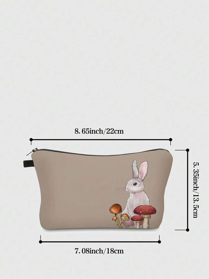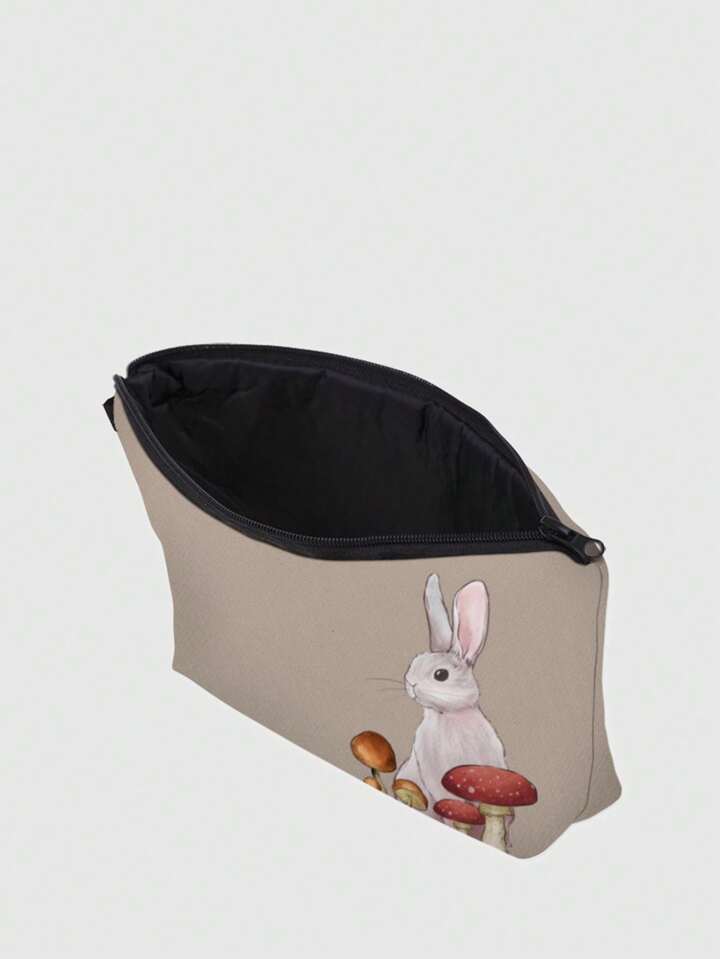 Fairycore 1pc Cartoon Rabbit & Mushroom Print Zipper Makeup Bag
