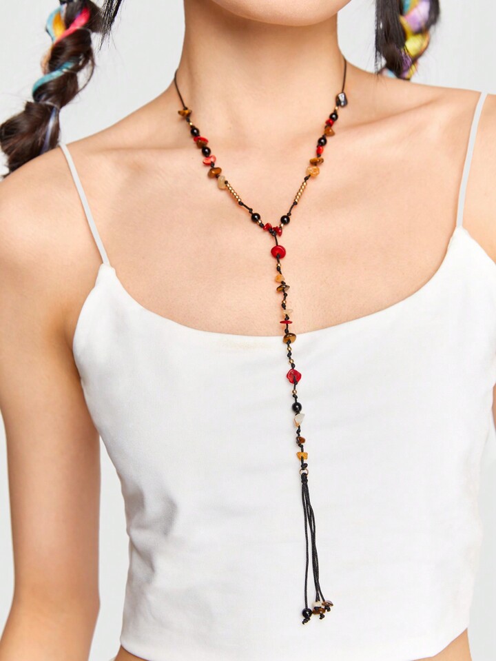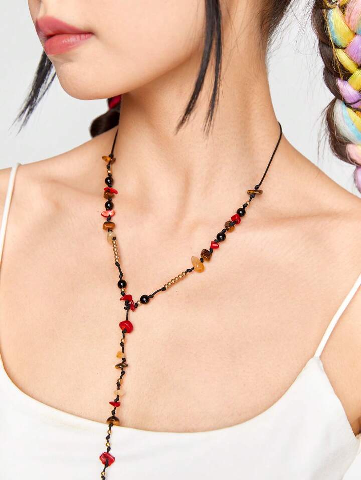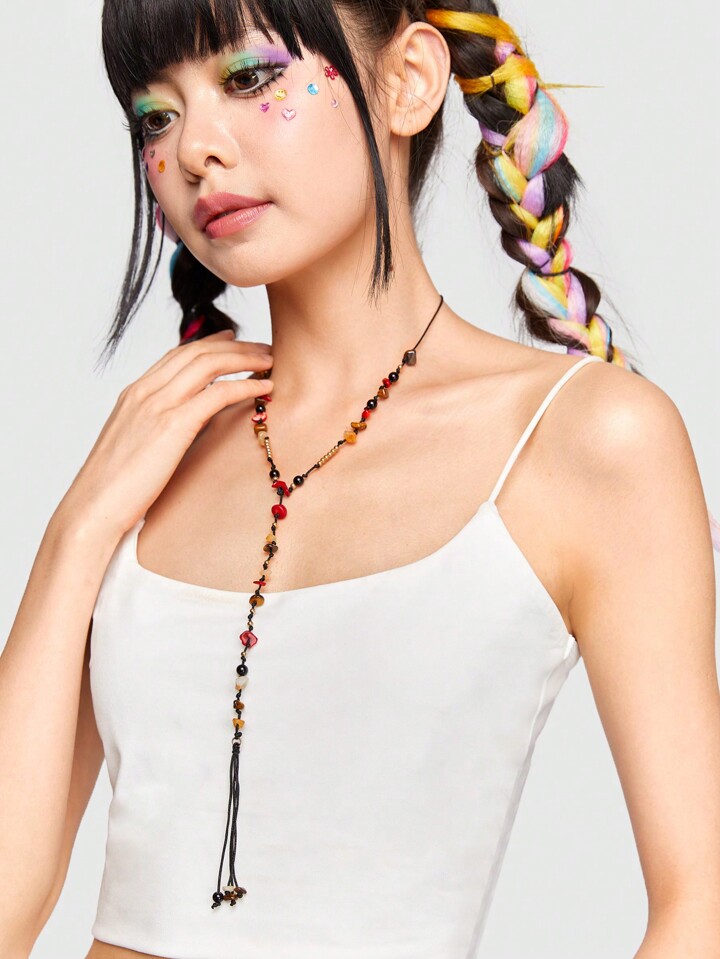 Fairycore 1pc Fashionable Bohemian Chakra Stone & Crystal Beaded Necklace