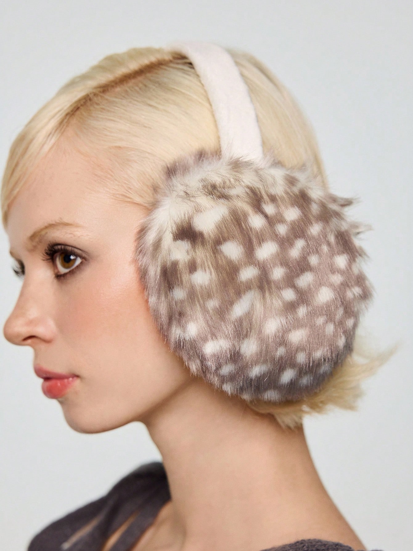 Fairycore 1pc Millennium Babe Retro Fuzzy Deer Pattern Animal Print Ear Warmer, Fashionable Minimalist Versatile Wild Style Earmuffs For Women, Suitable For College, Dates, Travel, Halloween, Christmas And Other Autumn/Winter Outfits