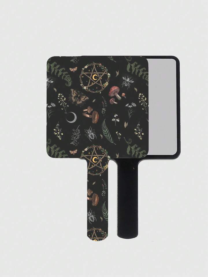 Fairycore 1pc Mushroom, Floral, Star & Moon Makeup Mirror, High-Quality Convenient Compact Handheld Mirror, Suitable For Home, Travel, Outdoor Use (Pattern Placement Random)
