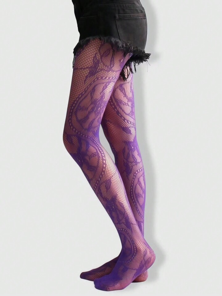 Fairycore 1pc Purple Floral Highly Elastic & Sexy Women Pantyhose/Tights/Leggings