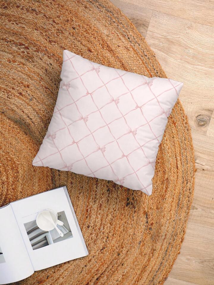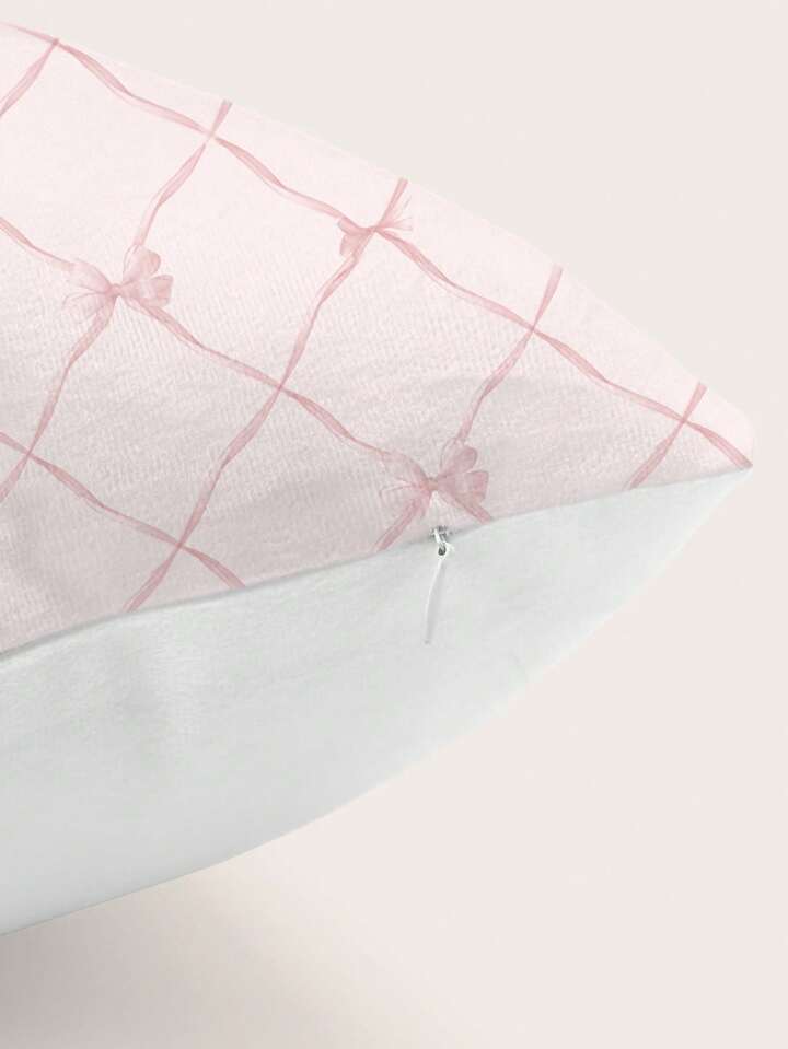 Fairycore 1pc Romantic Ribbon Bow Plaid Pattern Pillow Cover (No Pillow Insert), Velvet Printed Square Cushion Cover, Suitable For Living Room, Bedroom, Home Decor, Sofa, Car, Applicable For All Seasons