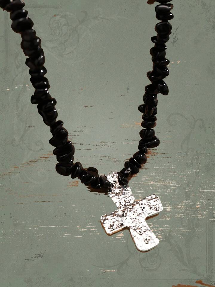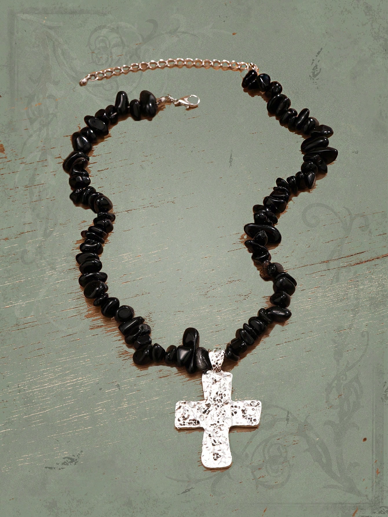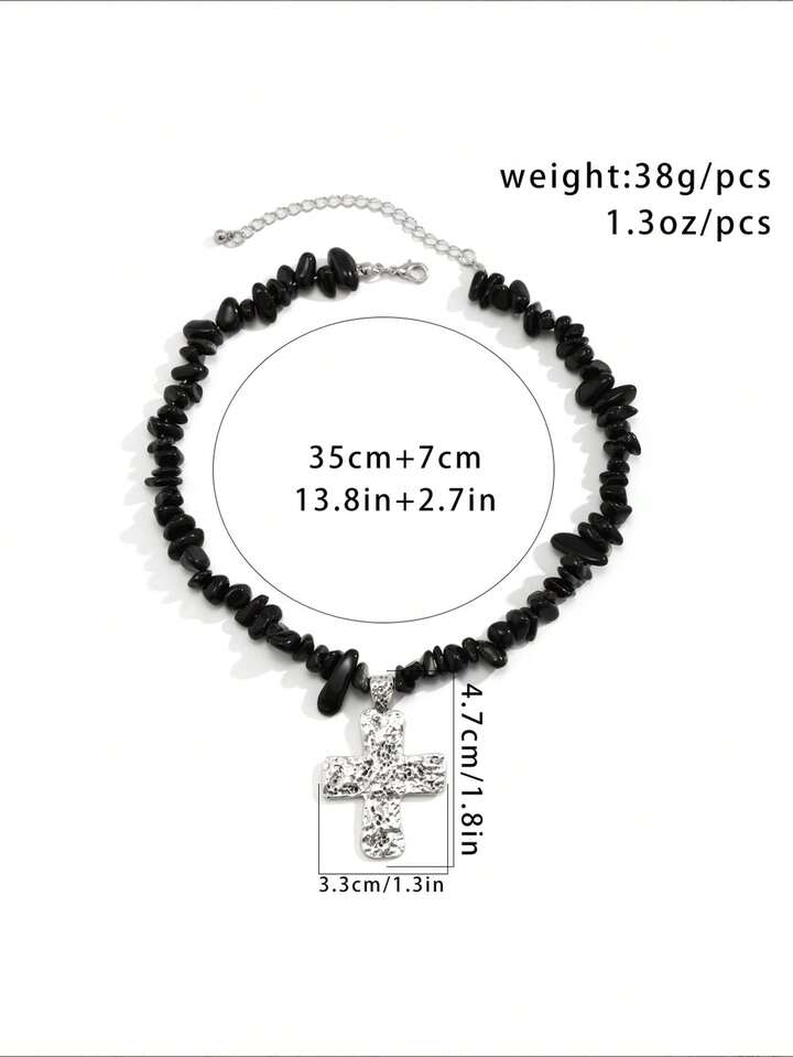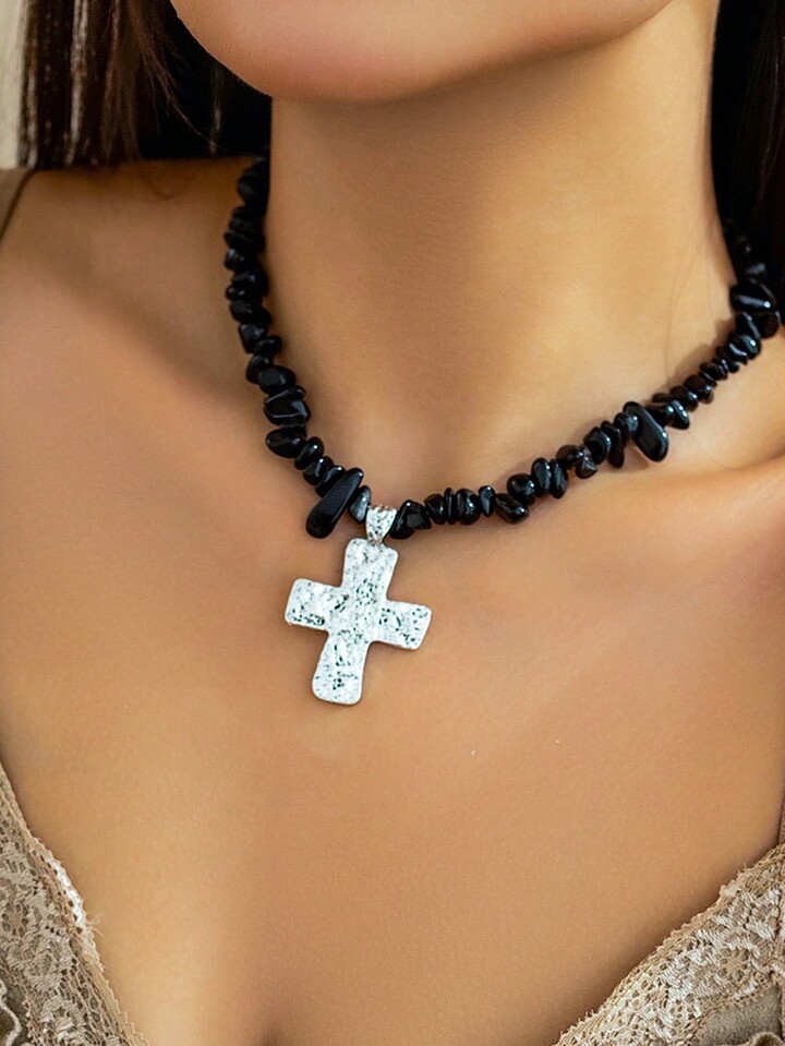 Fairycore 1pc Stylish Punk & Gothic Style Stone Beaded Cross Pendant Necklace