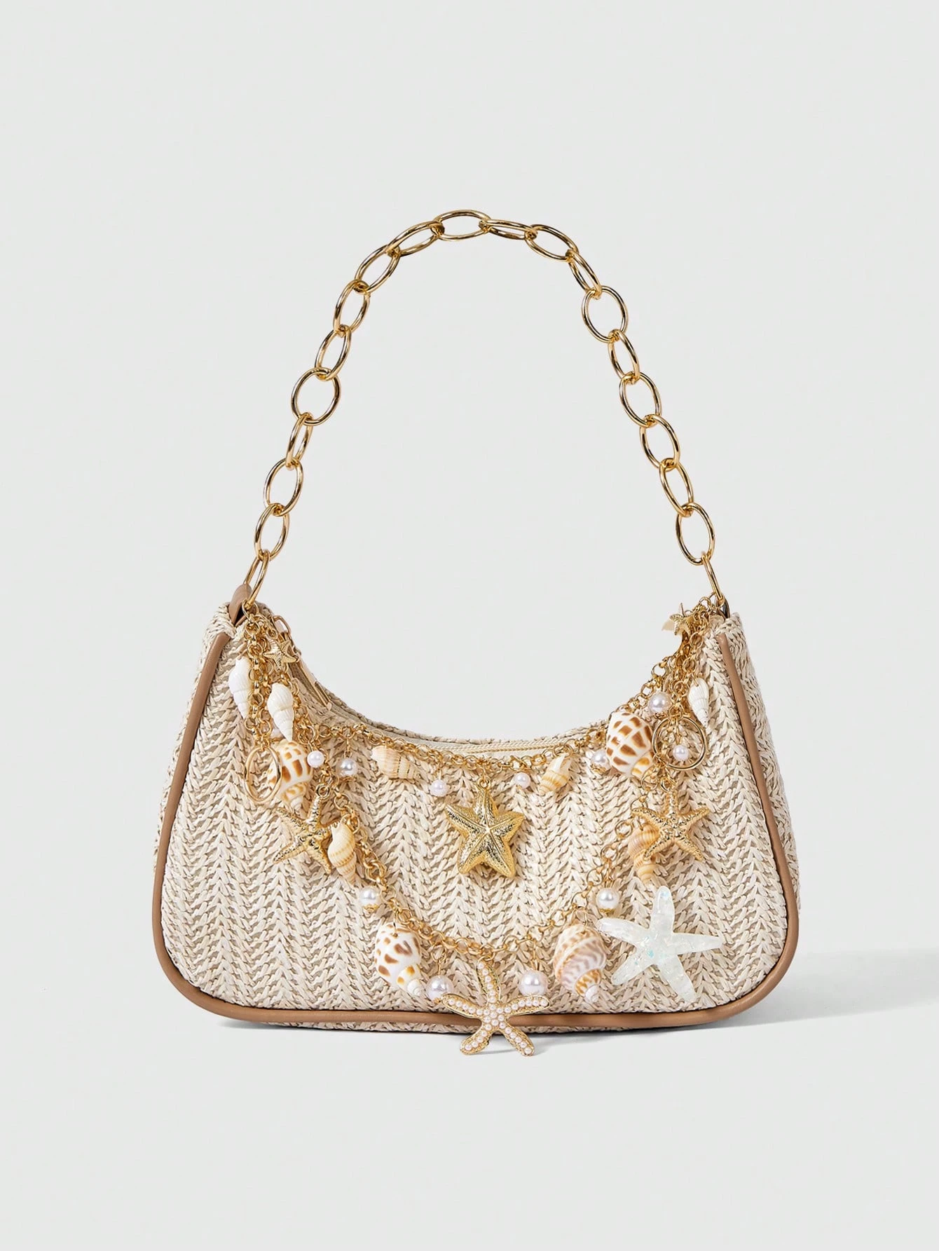 Fairycore 1pc Summer Beach Starfish Series Woven Shoulder Bag/Tote Bag, Beach Bag, Straw Handbag (Decoration Placement Random)