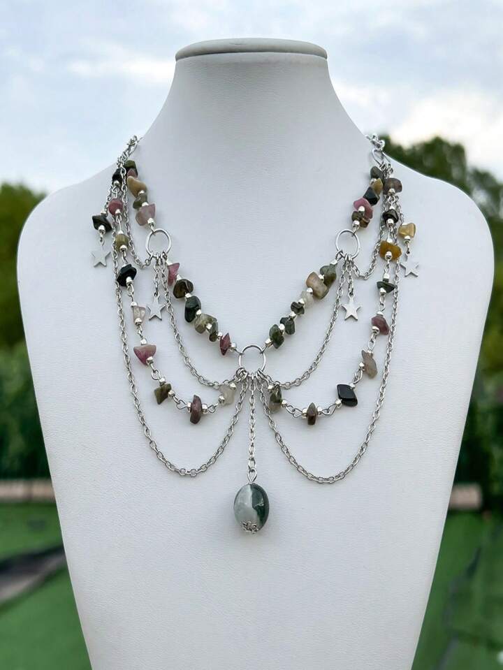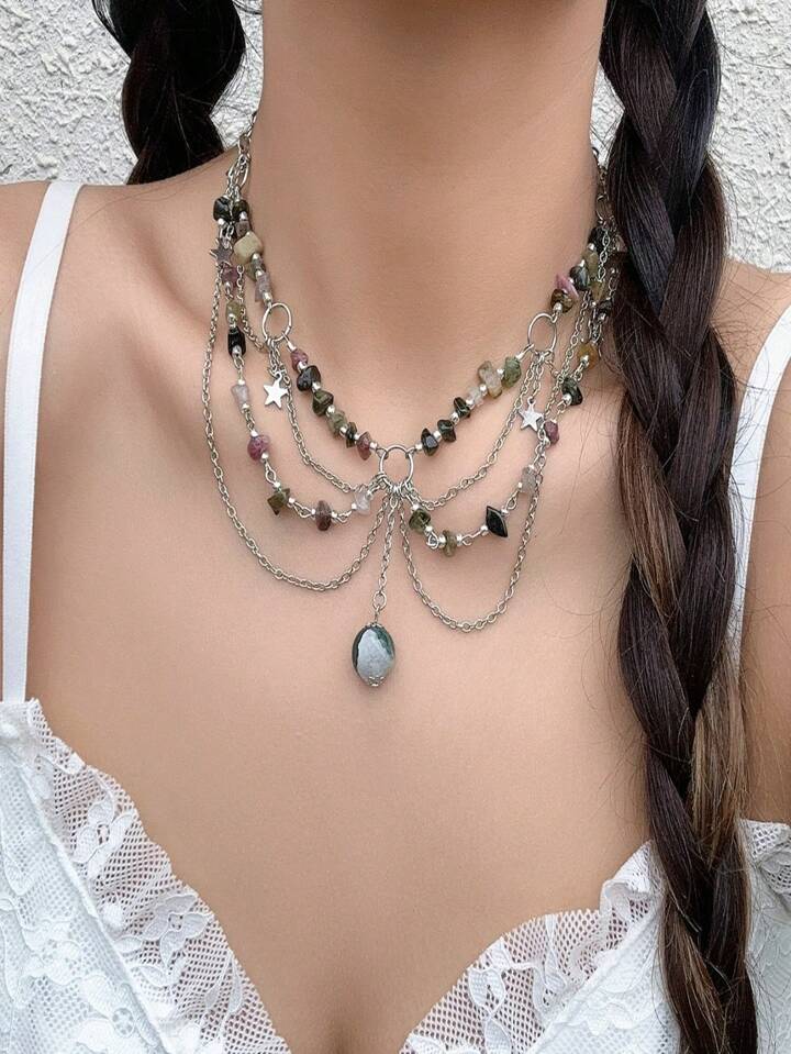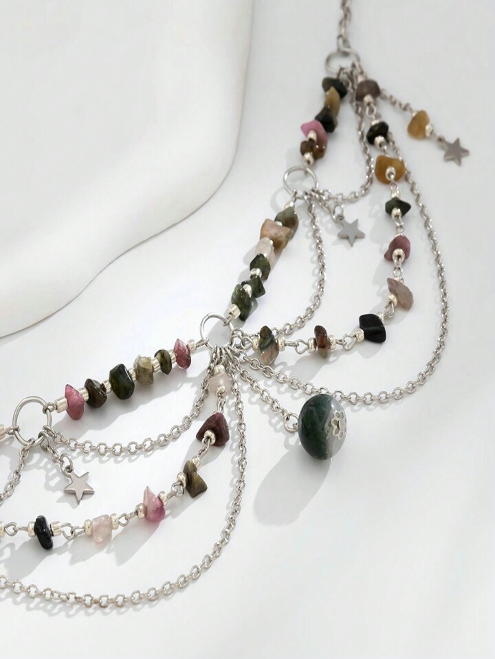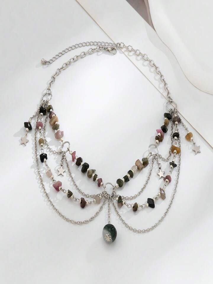 Fairycore 1pc Sweet & Cool Multi Layered Chain With Star Charm & Stone Detail Necklace