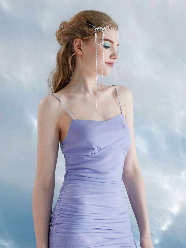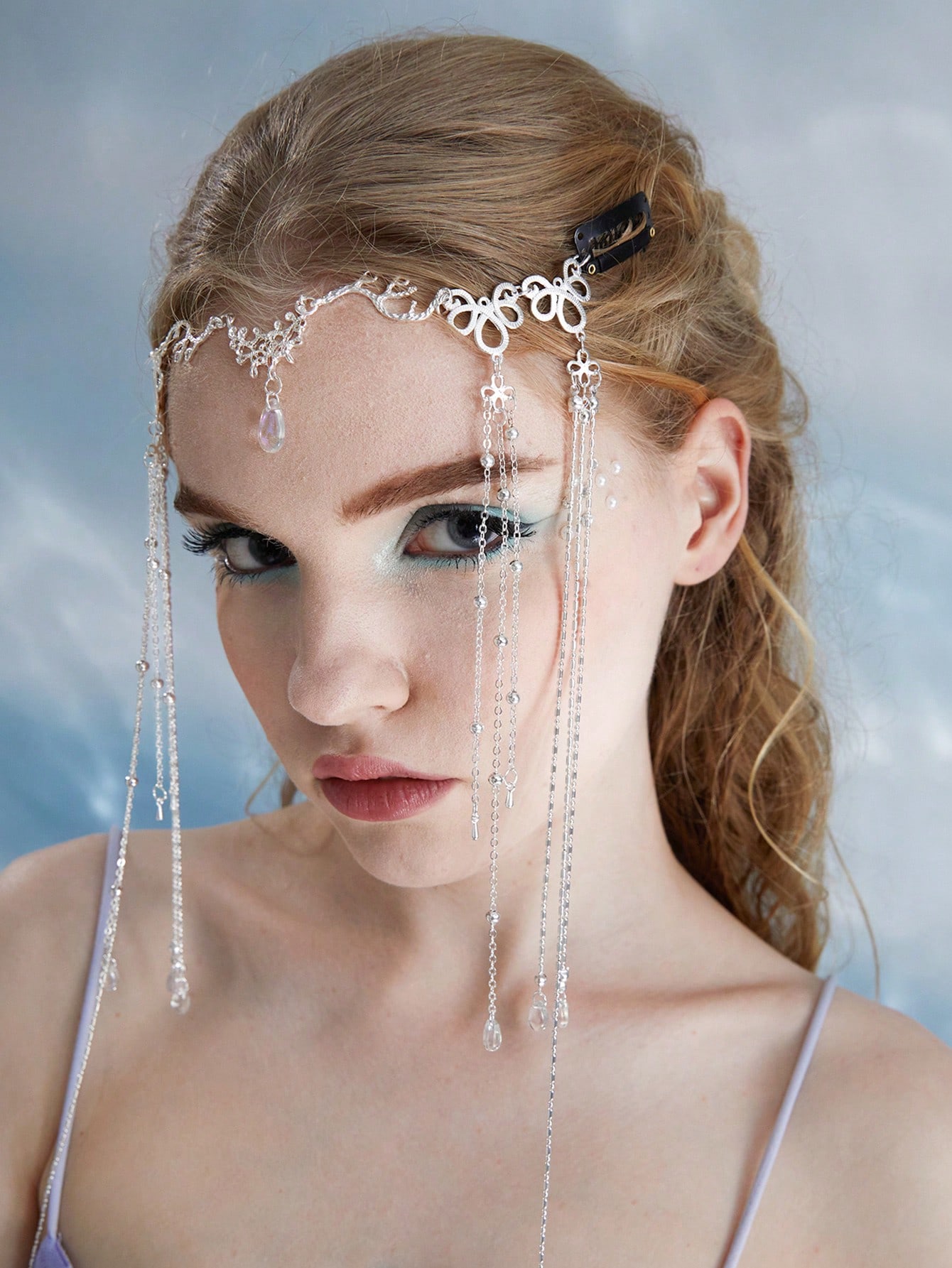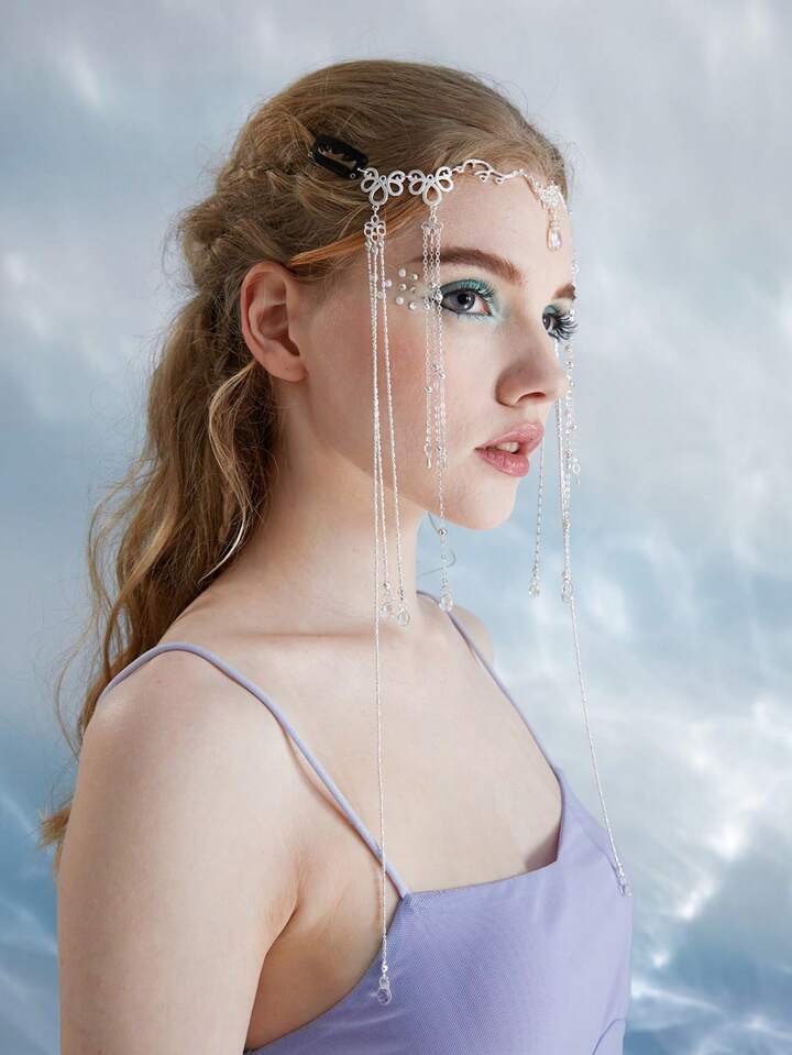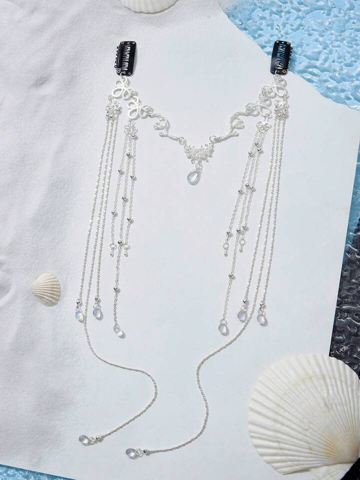 Fairycore 1pc Women Mermaid Beaded Water Drop Charm Fashion Hair Chain For Hair Decoration