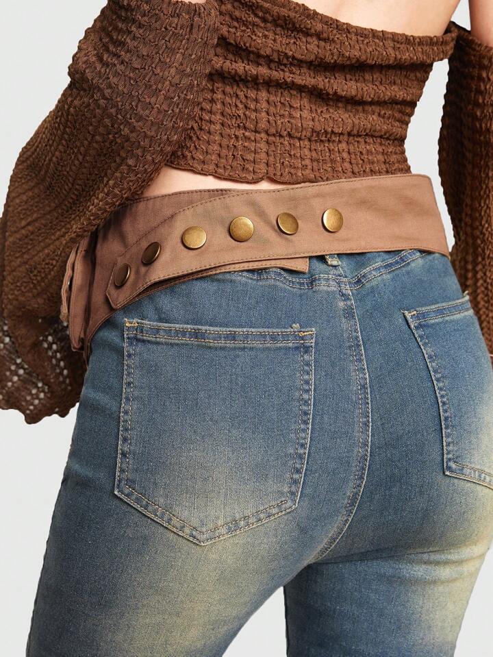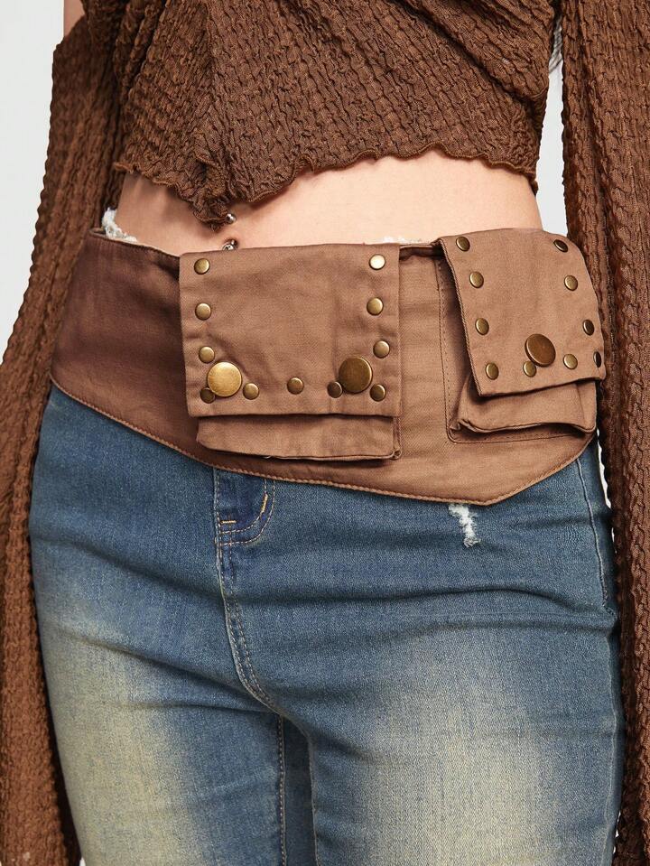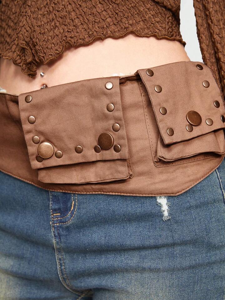 Fairycore 1pc Women Solid Studded Pocket Decor Belt