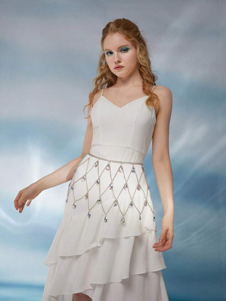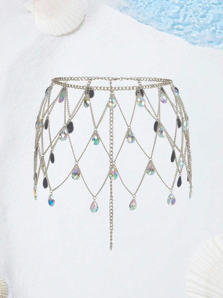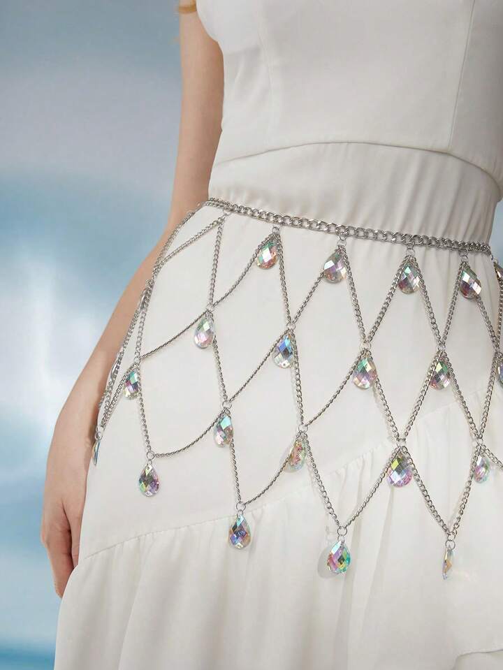 Fairycore 1pc Women Water Drop Rhinestone Decor Mermaid Chain Belt For Daily Decoration