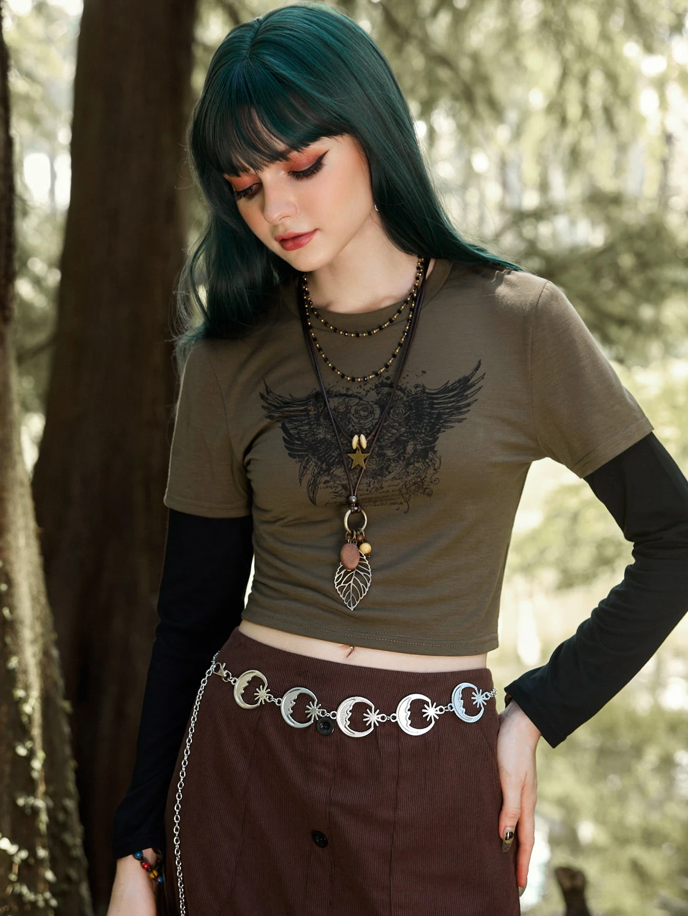 Fairycore 2 In 1 Wings Graphic Crop Tee