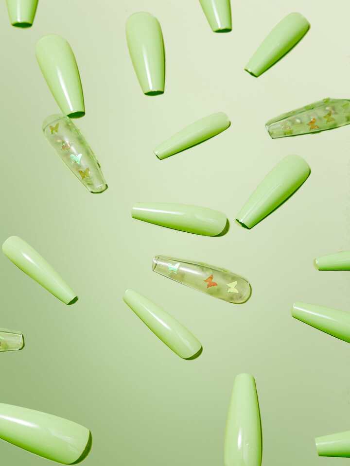 Fairycore 24pcs Butterfly Graphic False Nail & 1sheet Tape