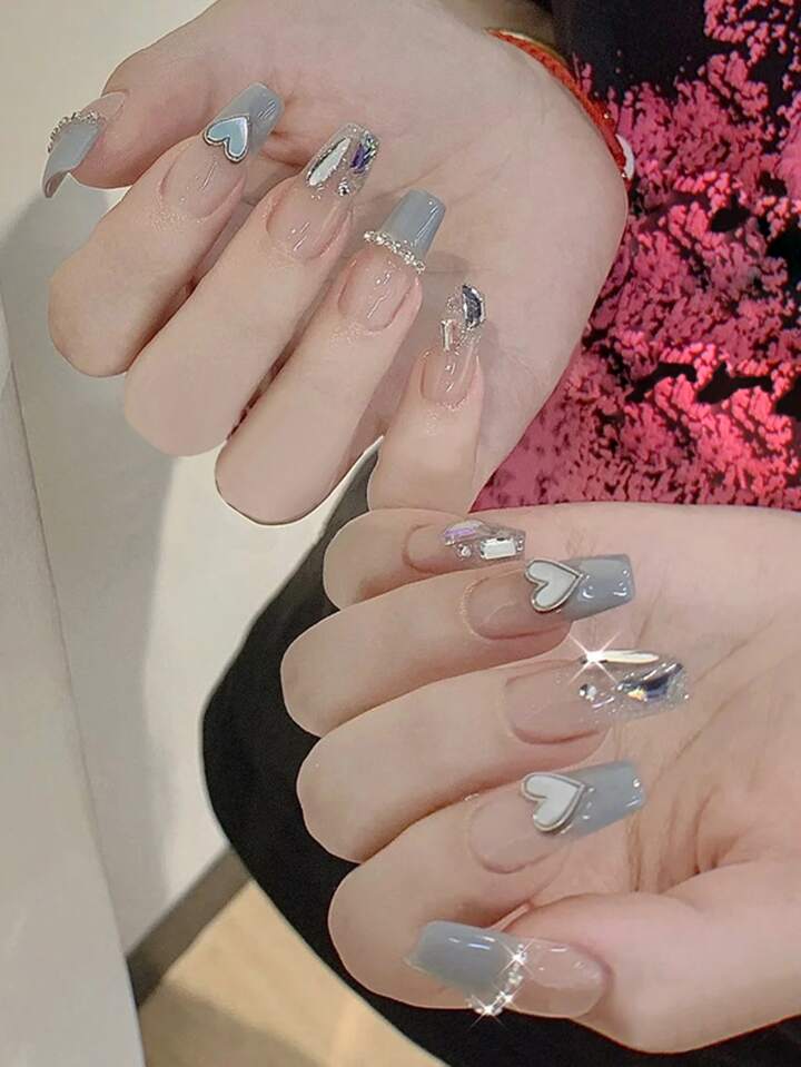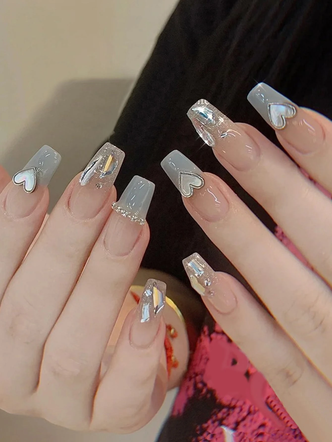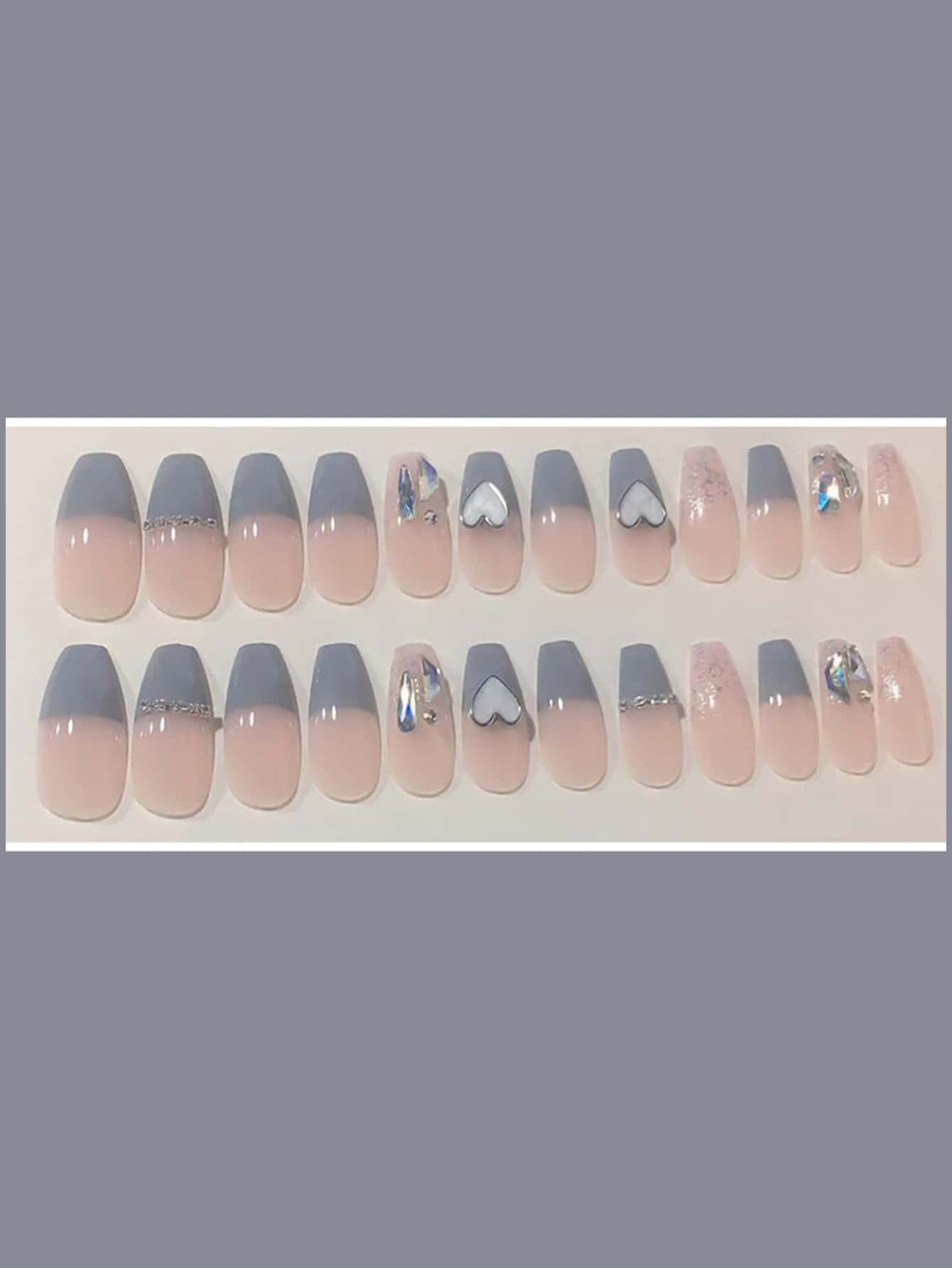 Fairycore 24pcs Coffin 3D Heart Decor Fake Nail & 1sheet Nail Tape