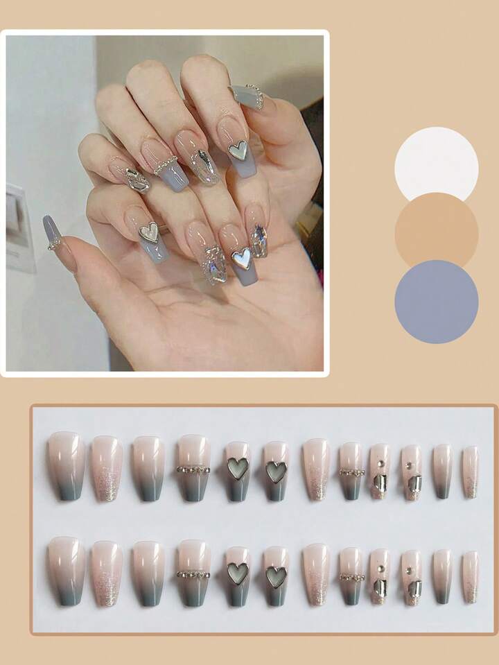 Fairycore 24pcs Coffin Rhinestone Decor Fake Nail