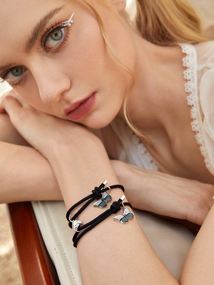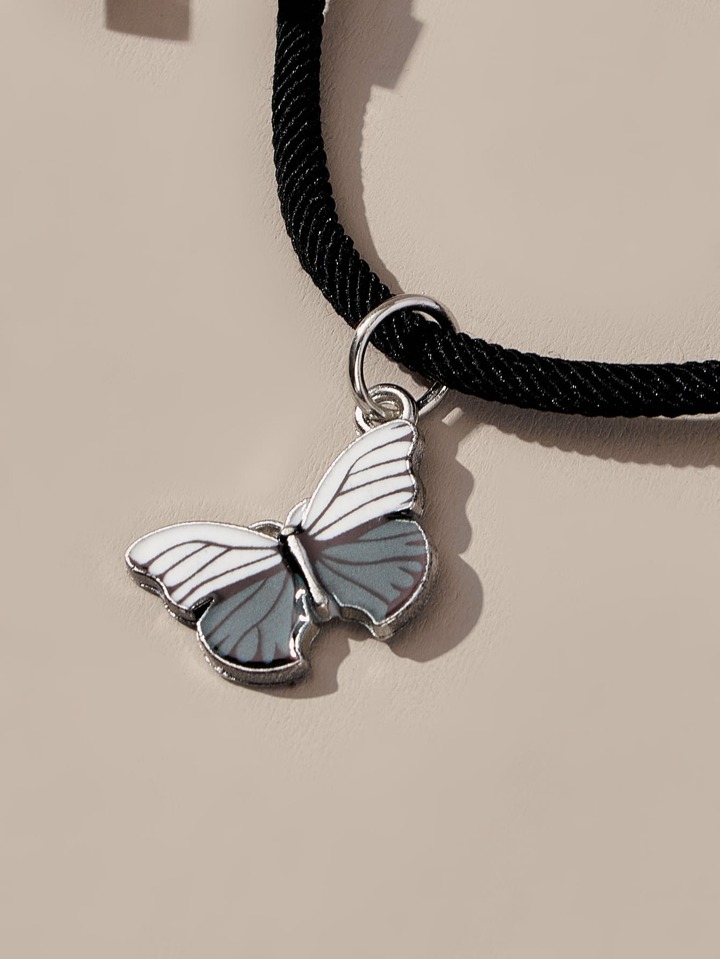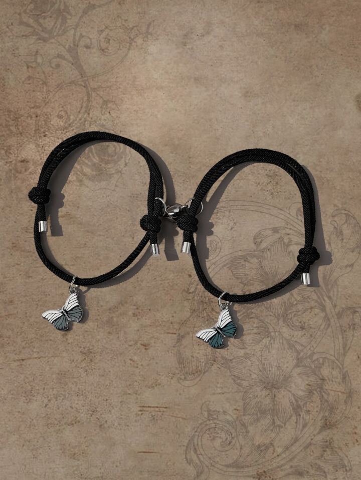 Fairycore 2pcs Couple Butterfly & Magnetic Heart Charm Bracelet