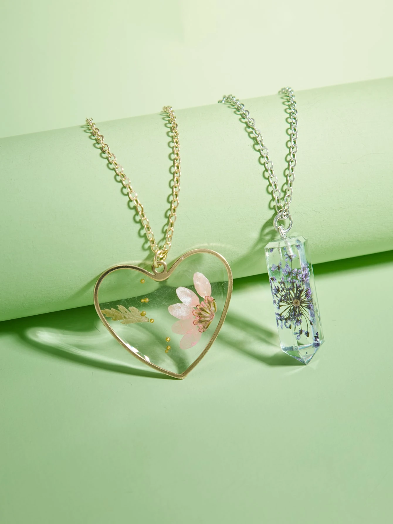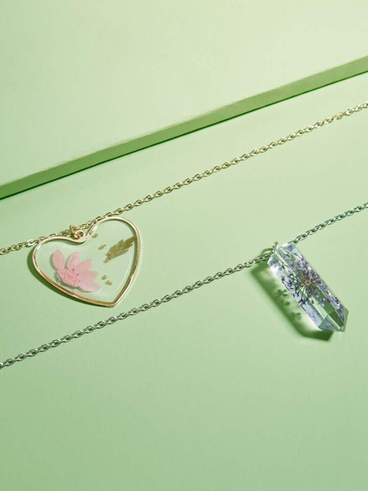 Fairycore 2pcs Flower Detail Heart Pendant Necklace