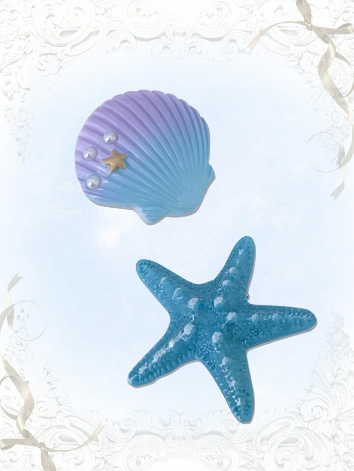 Fairycore 2pcs Women Starfish & Shell Decor Hair Clip