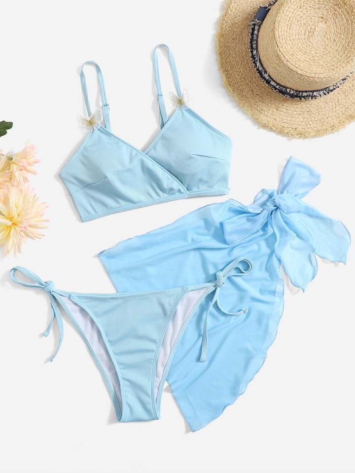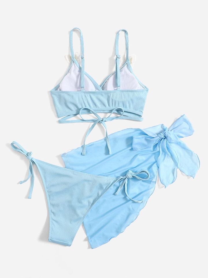 Fairycore 3packs Solid Bikini With Beach Skirt