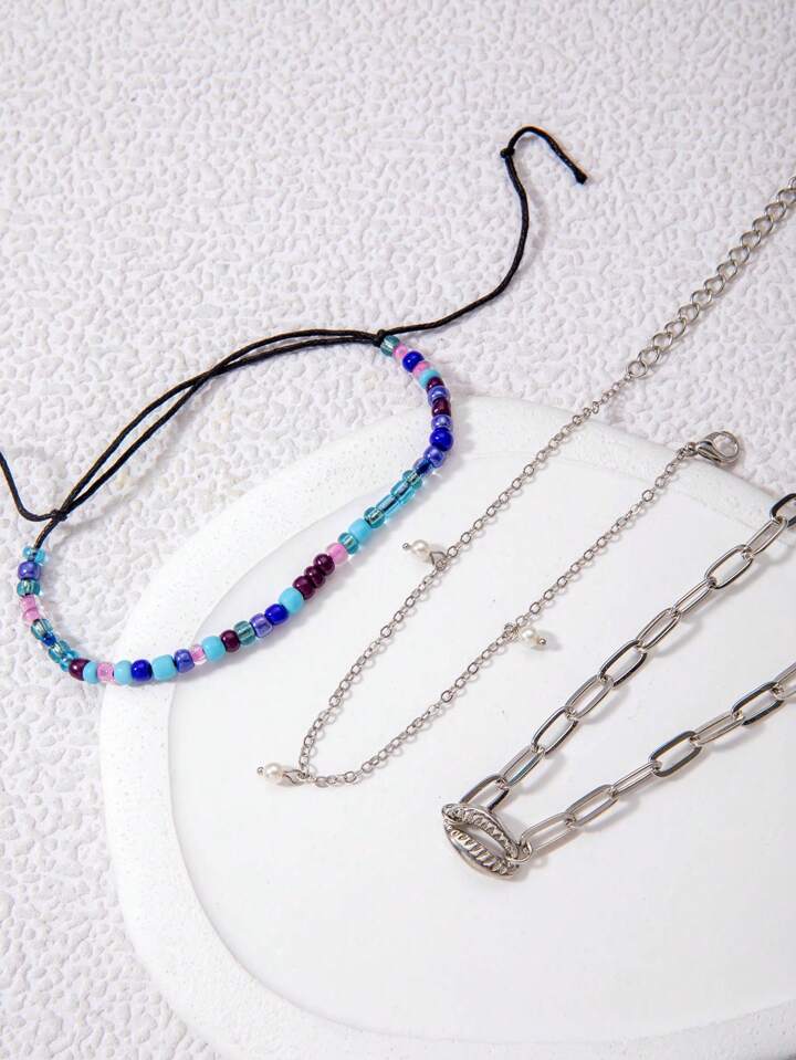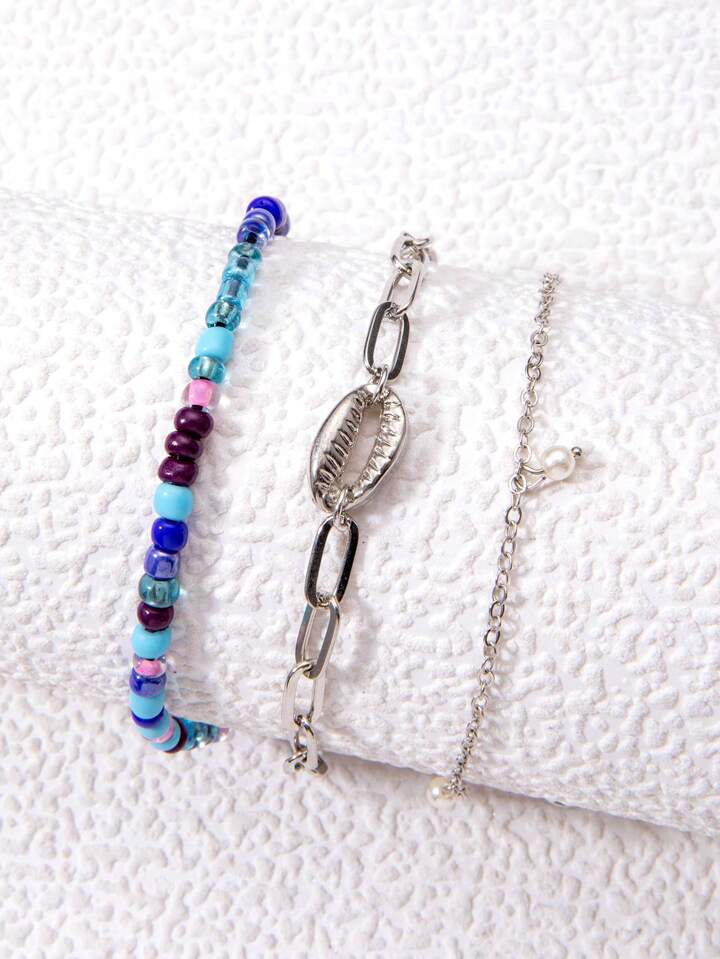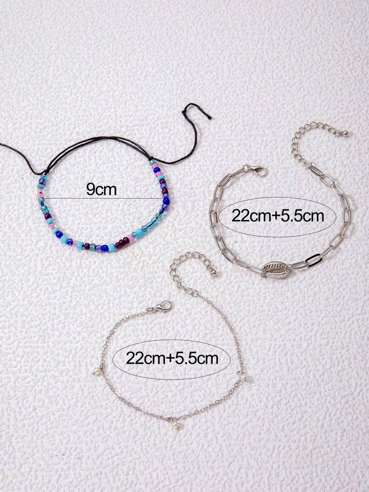 Fairycore 3pcs Fashion Zinc Alloy Shell Decor Anklet For Women For Daily Decoration