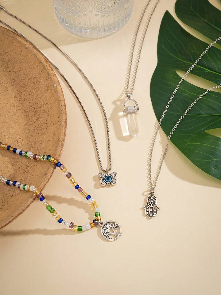 Fairycore 4pcs Fashion Iron Alloy Hamsa Hand & Evil Eye Decor Necklace For Women For Daily Decoration