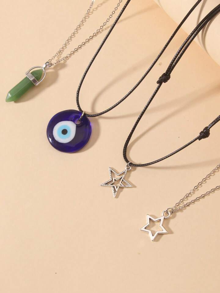 Fairycore 4pcs/set Vintage Style Star Pendant Necklace