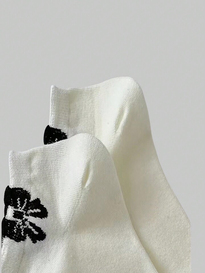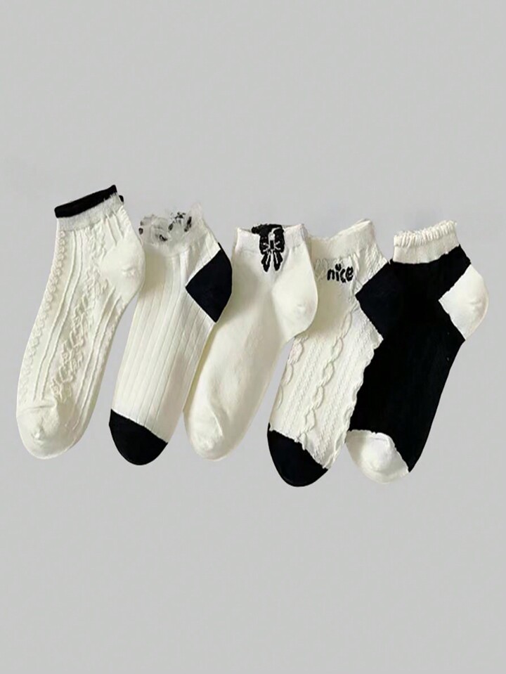 Fairycore 5pairs/set Black And White Cute Short Socks