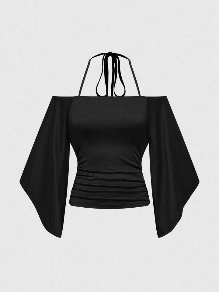 Fairycore Black Hippie Romantic Sexy Off Shoulder Halter Women T-Shirt