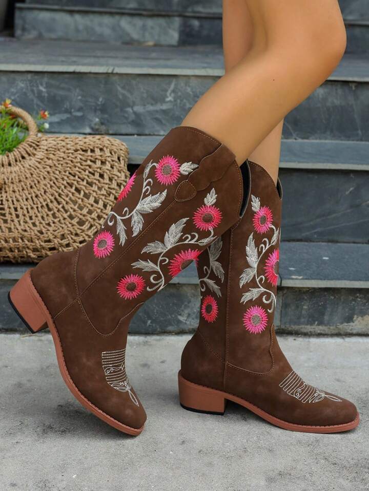 Fairycore British Style Fashion Boots For Women, 2023 Autumn & Winter, Chunky Heel, Mid-calf, Vintage Embroidery Design