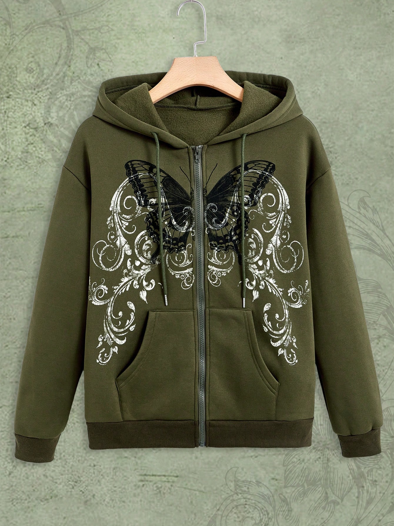 Fairycore Butterfly Graphic Zip Up Drawstring Thermal Hoodie