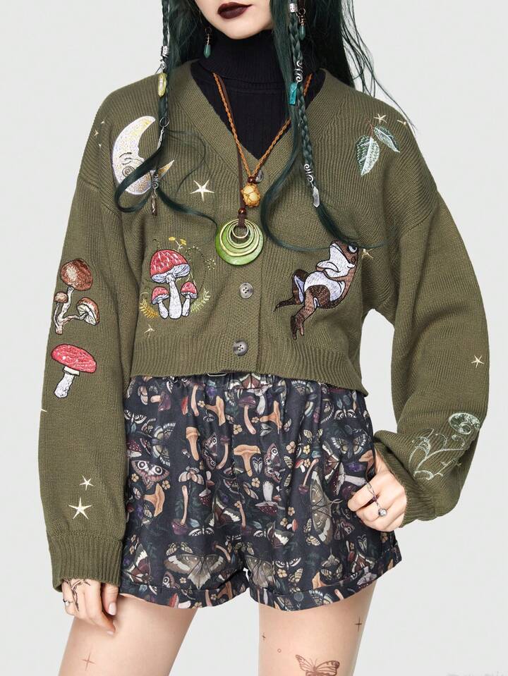 Fairycore Butterfly Pattern Drop Shoulder Cardigan