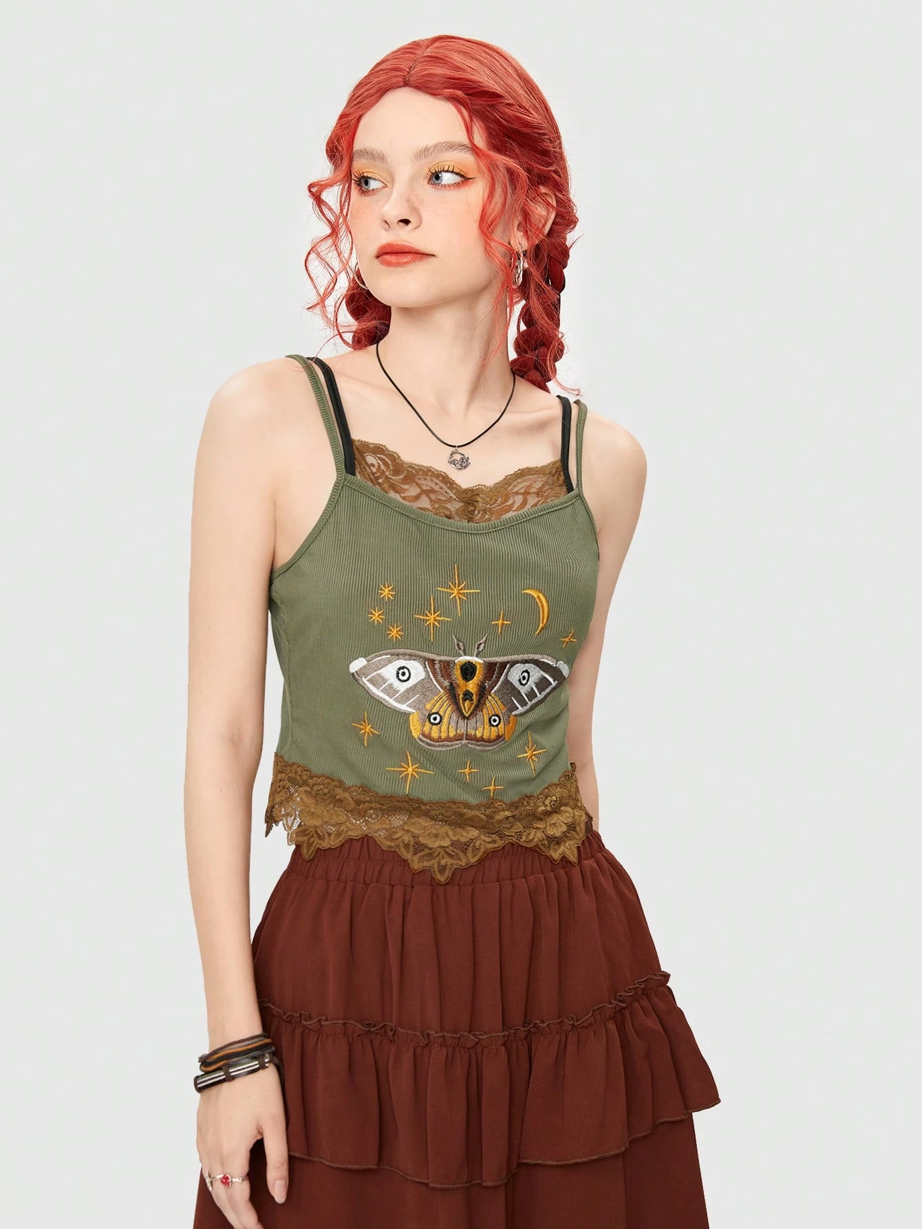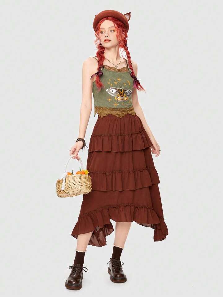 Fairycore Cartoon Graphic Contrast Lace Cami Top