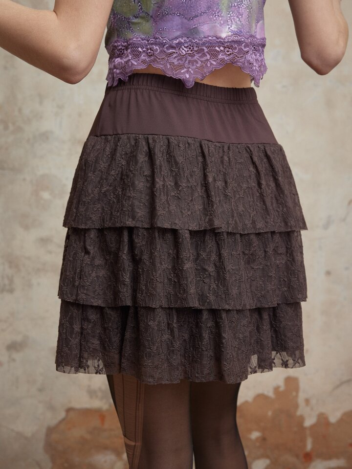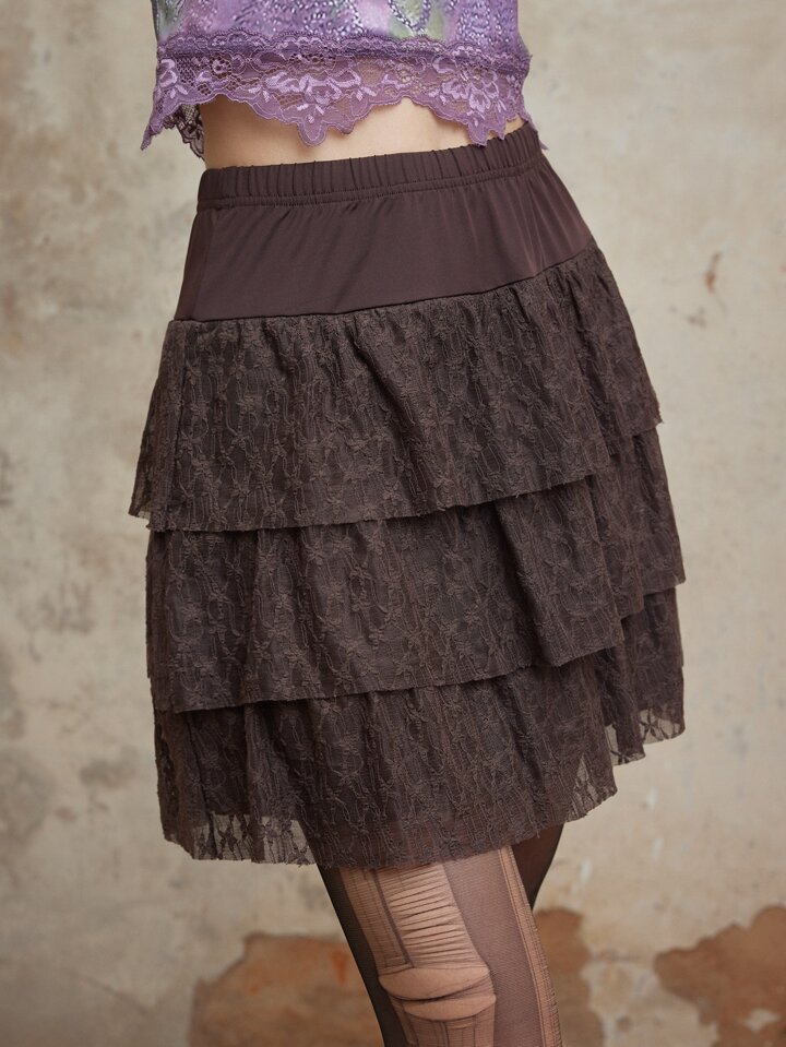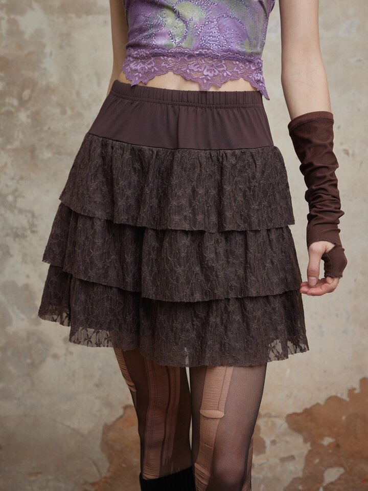 Fairycore Contrast Lace Layer Hem Skirt