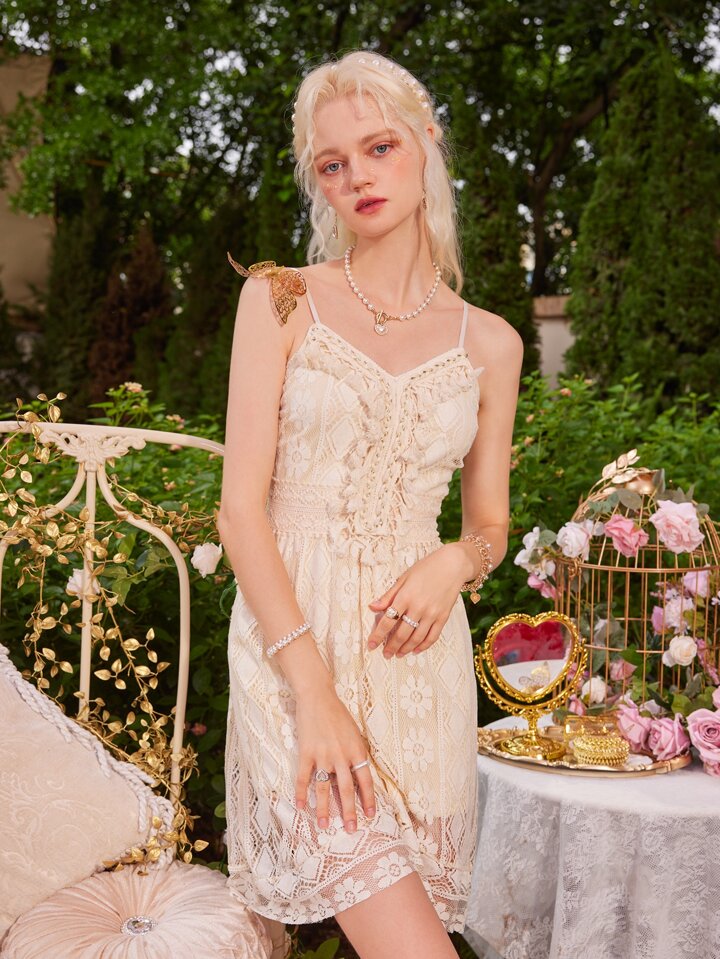 Fairycore Contrast Lace Tassel Decor Cami Dress