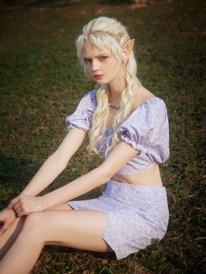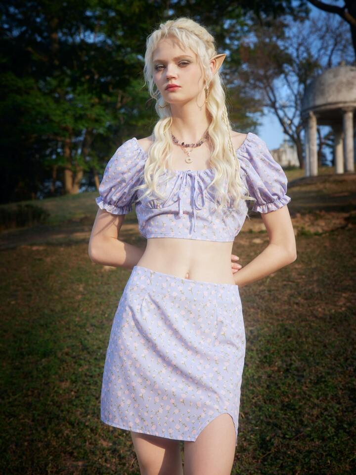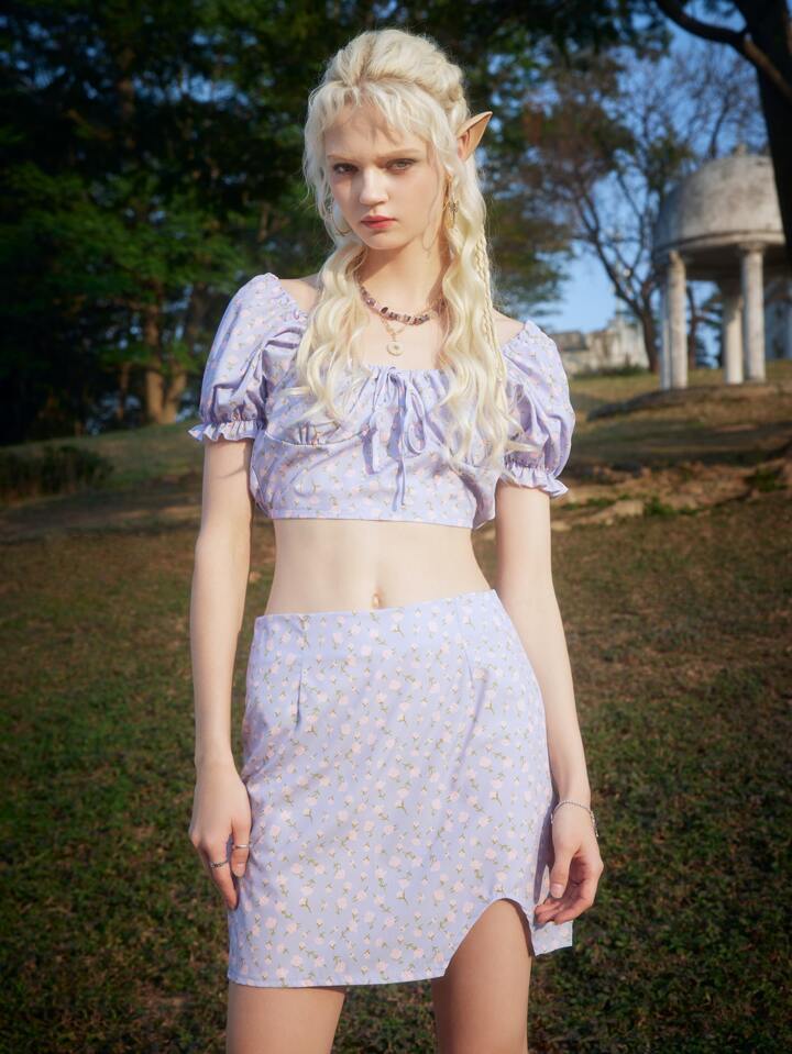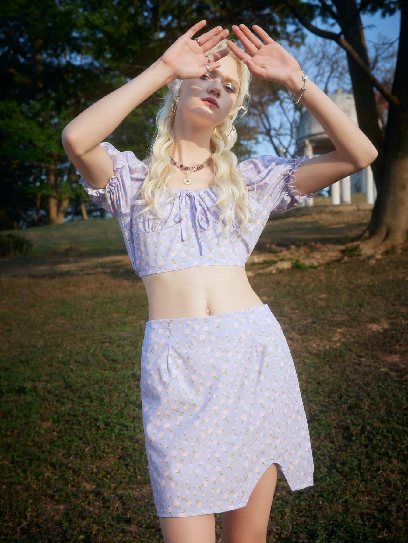Fairycore Ditsy Floral Crop Blouse & Split Hem Skirt