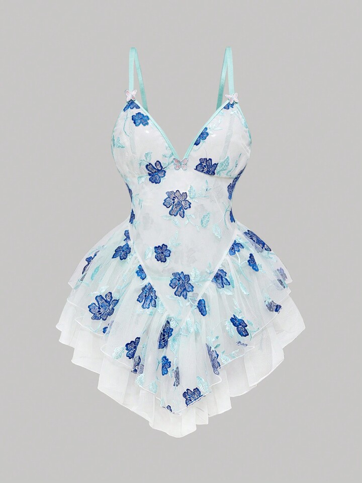 Fairycore Dreamlike Floral Embroidered Layered Ruffle Hem Bowknot Lace-Up Backless Handmade Sexy Dress Set For Women
