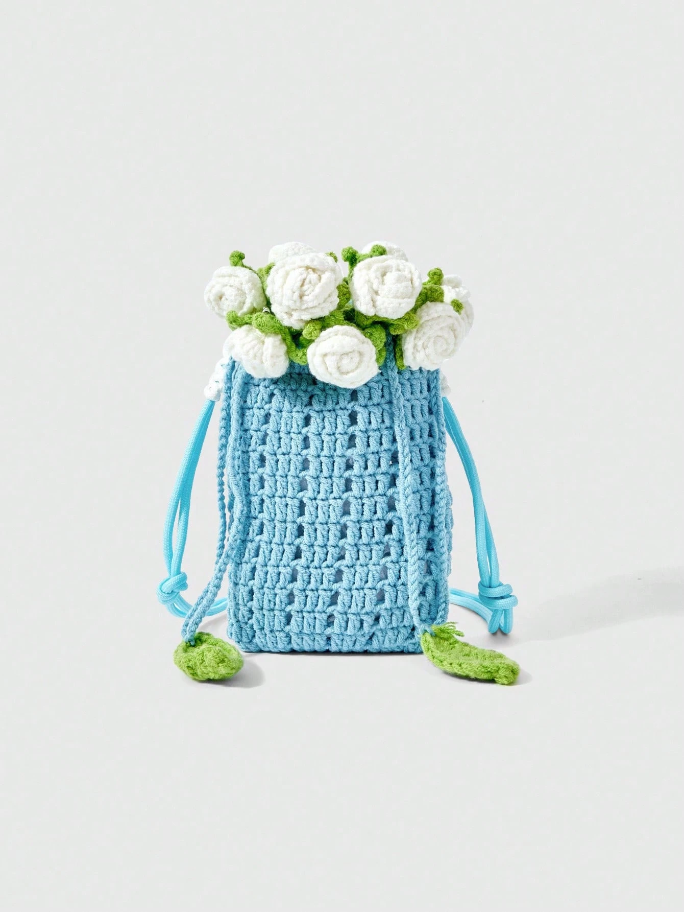 Fairycore Fashion Contrast Color Rose Knit Tote Shoulder Bag