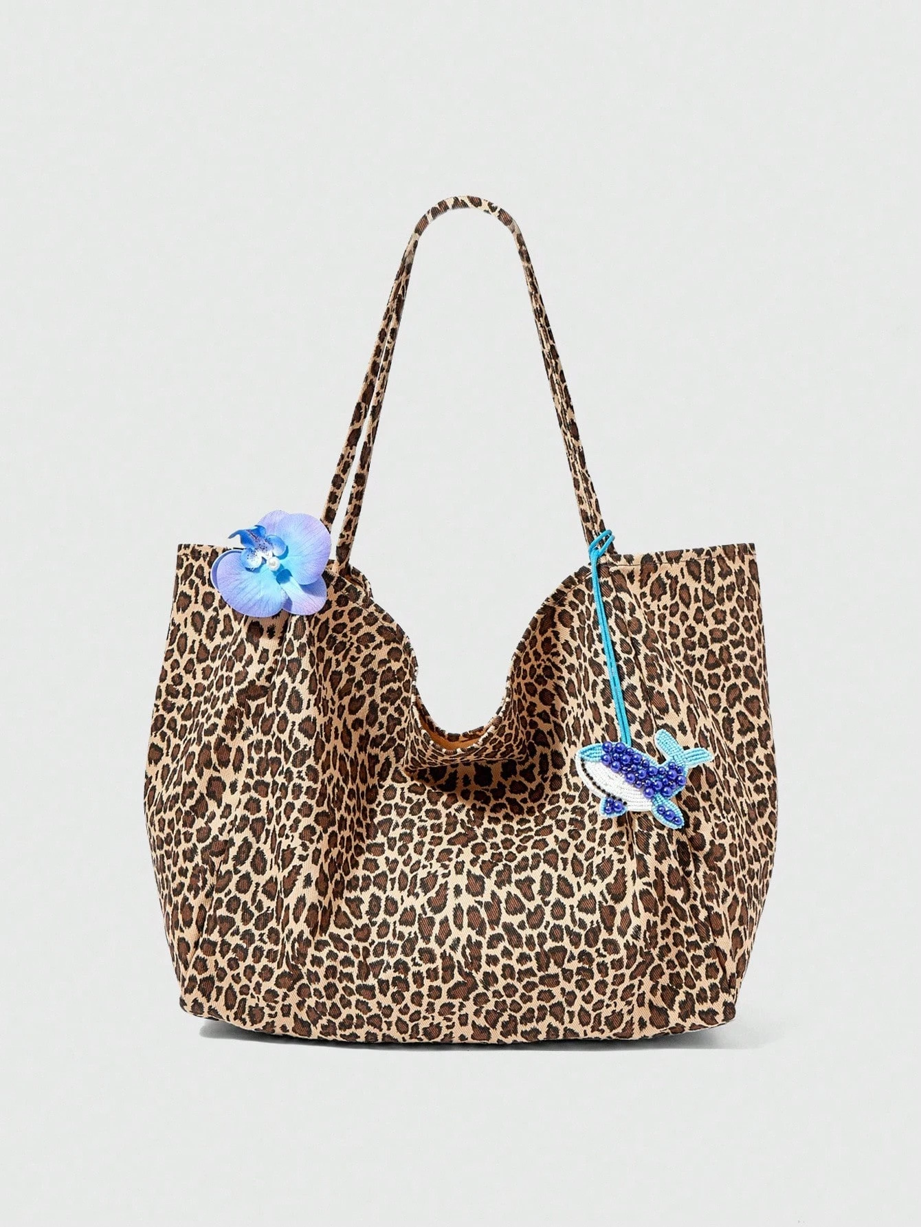 Fairycore Fashionable Summer Leopard Print Shoulder Bag, Large Capacity Beach Tote Bag For Women
