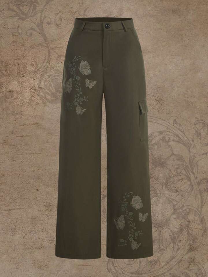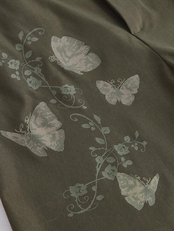 Fairycore Floral & Butterfly Print Flap Pocket Cargo Pants