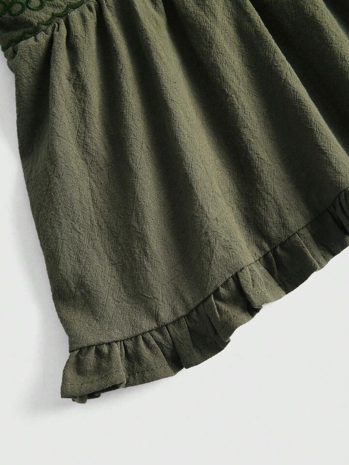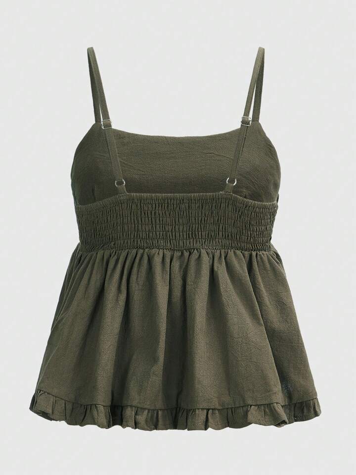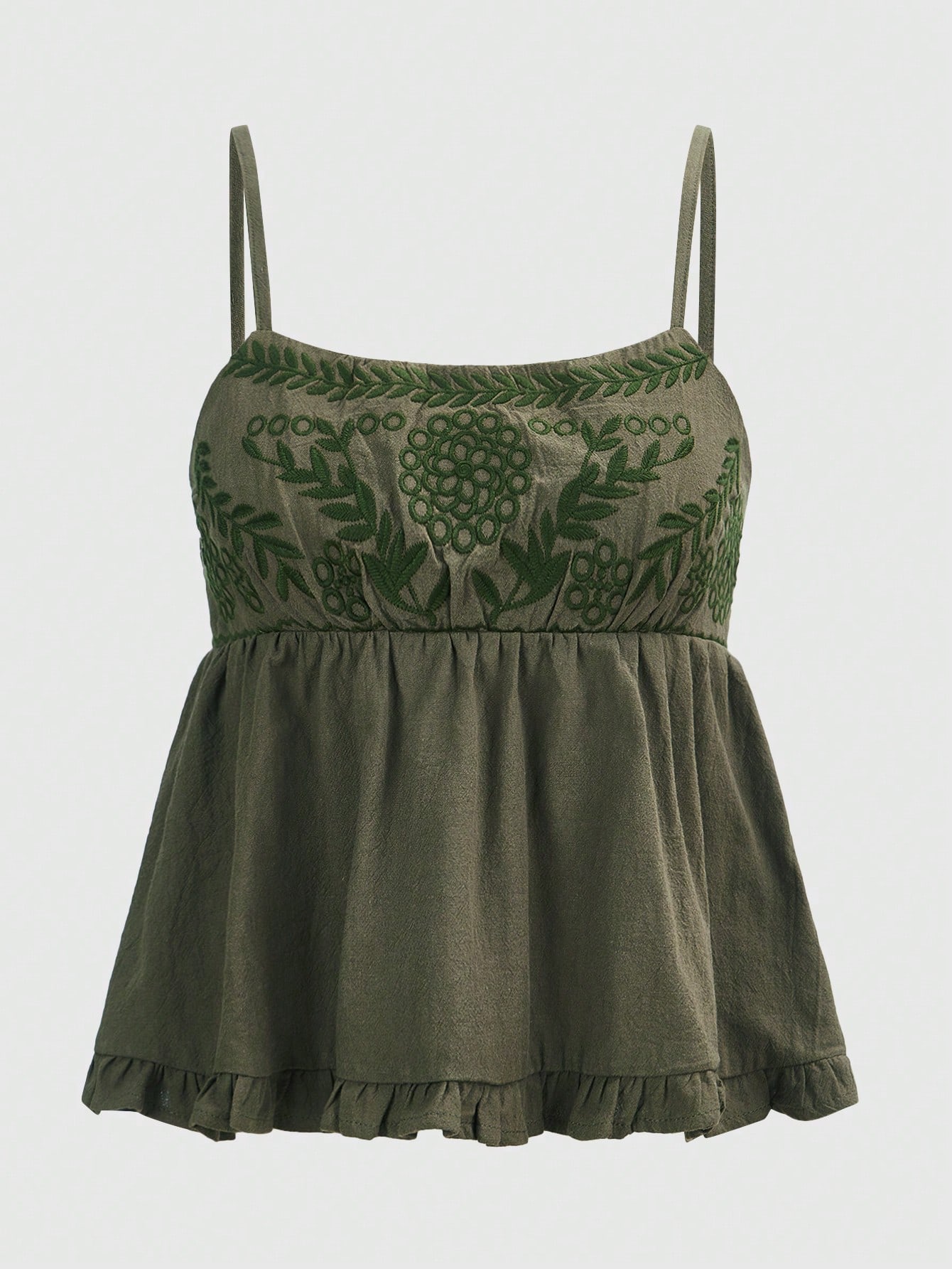 Fairycore Floral Embroidery Ruffle Hem Cami Top