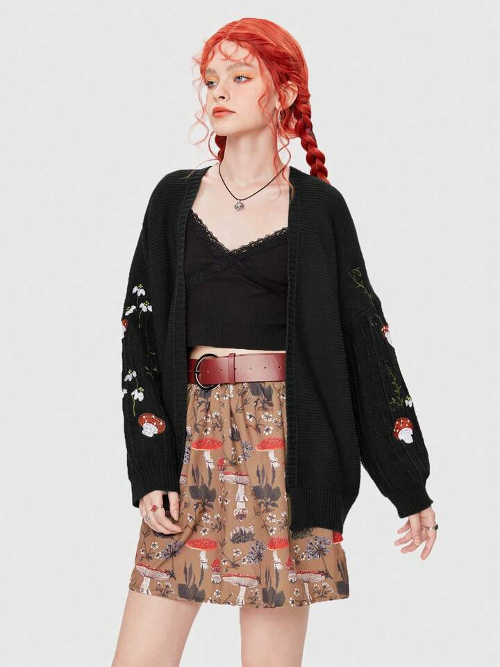 Fairycore Floral & Mushroom Embroidery Cardigan