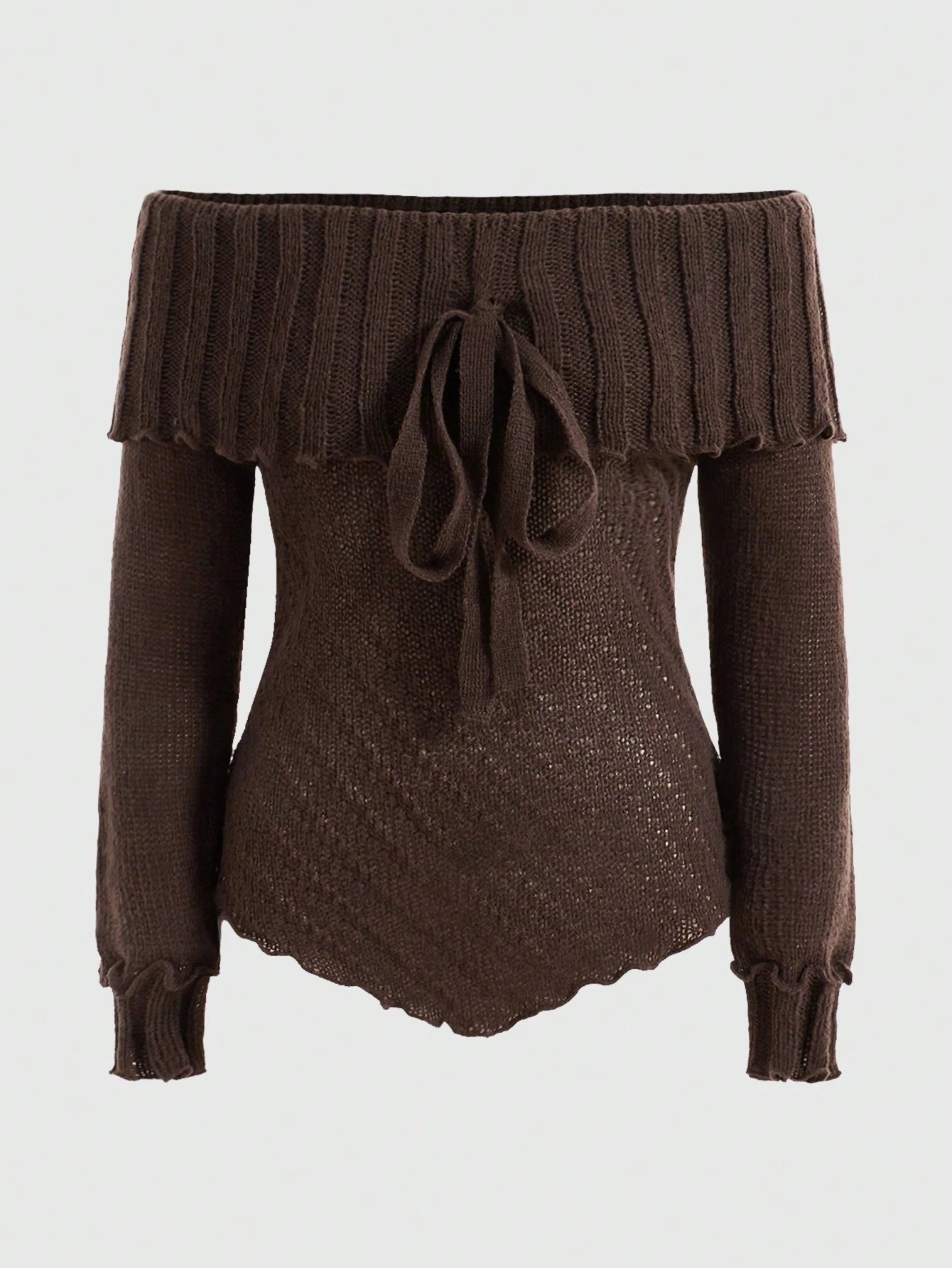 Fairycore Foldover Off Shoulder Knot Front Sweater