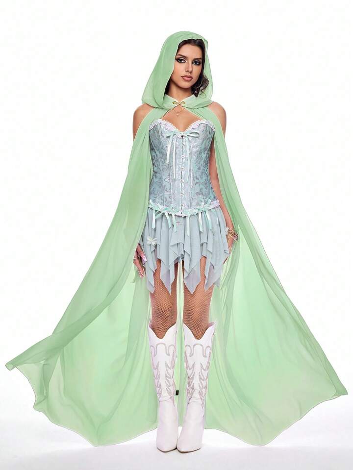 Fairycore Forest Fairy Queen Vintage Drop Shoulder Long Hooded Cape